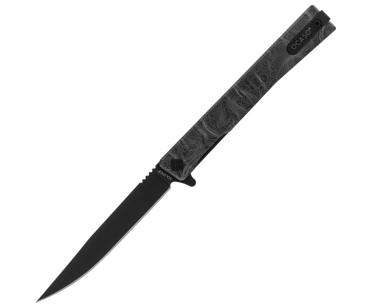 Нож Ocaso Solstice, Engraved titanium Topo Pattern, Black (10ETB)