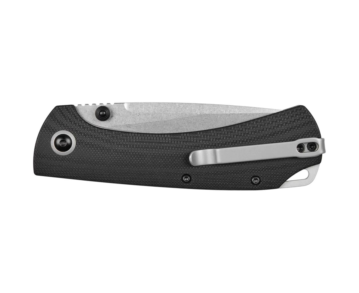 Рукоять Frontier Jr доступна в вариантах из алюминия или G10, что позволяет выбрать оптимальный баланс между весом и сцеплением. Декоративное кольцо вокруг осевого винта и бекспейсер в том же стиле придают модели узнаваемый характер и усиливают конструкцию. Для ежедневной носки предусмотрена клипса глубокой посадки и отверстие под темляк.