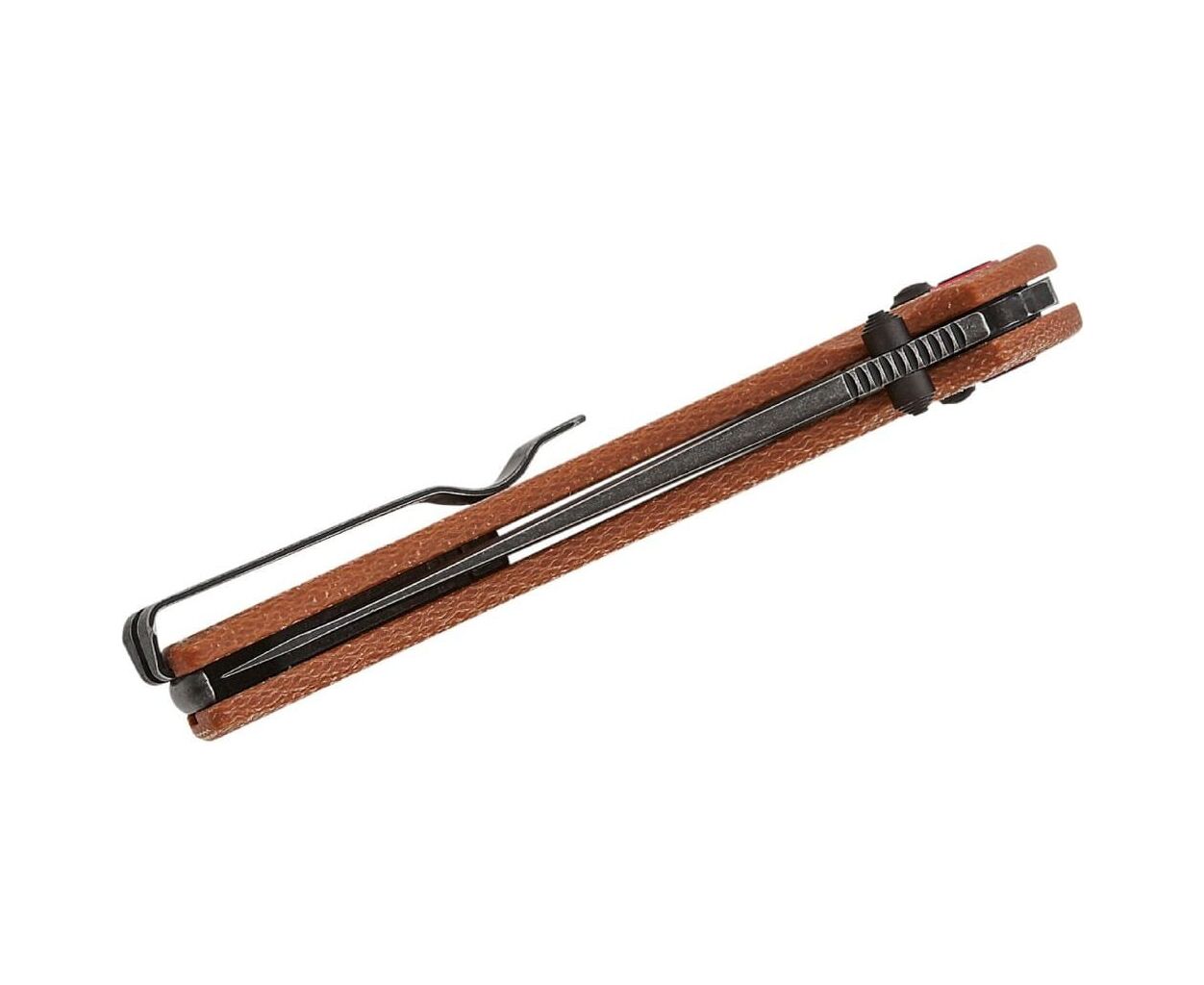 Рукоять, выполненная из прочной шероховатой микарты, обеспечивает надёжное сцепление и тактильный комфорт в любых условиях. Эргономичный дизайн делает работу с ножом удобной и максимально приятной, даже при длительном использовании. Дополнительным преимуществом является система Ambi Clip, позволяющая адаптировать нож как для правшей, так и для левшей без использования специальных инструментов.