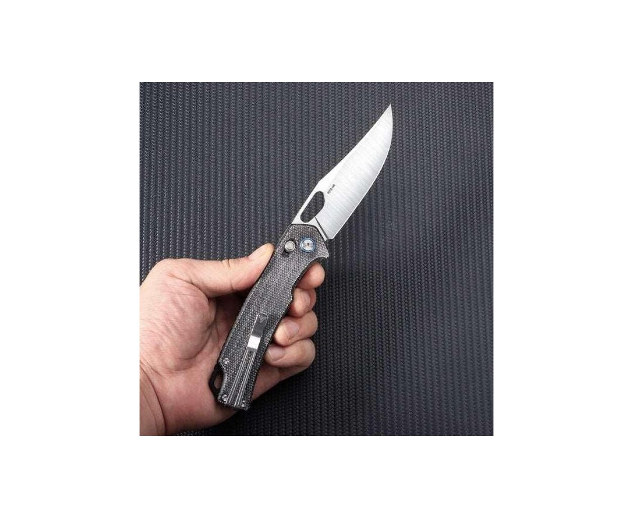 Рукоять выполнена из высококачественного Micarta с внутренними стальными направляющими (liners) из 420 нержавеющей стали. Такая конструкция обеспечивает надежное сцепление и комфорт даже в сложных условиях эксплуатации. Компактный и легкий — вес ножа составляет всего 86 г, что делает его удобным для ежедневного ношения и быстрого реагирования на любые задачи.