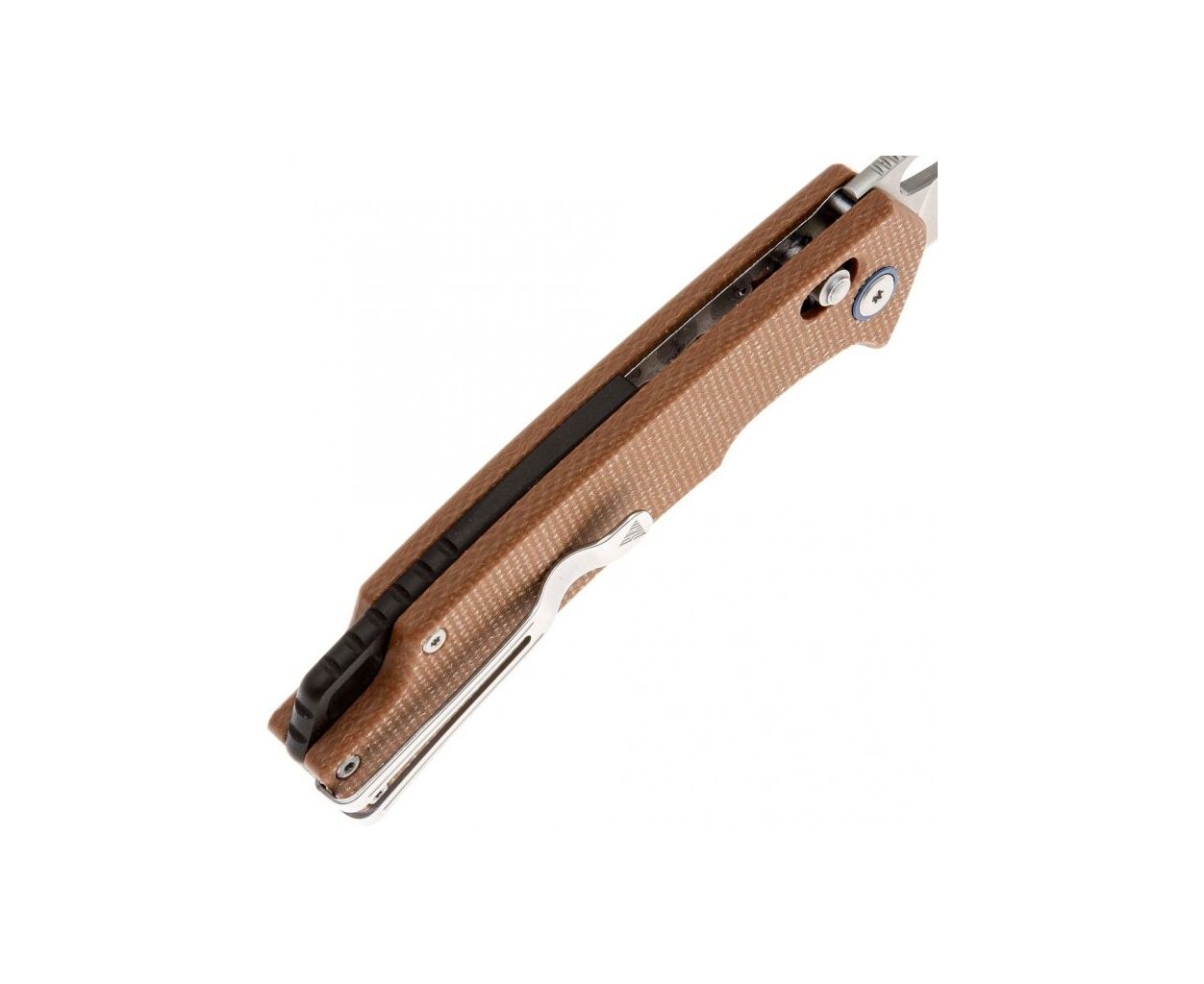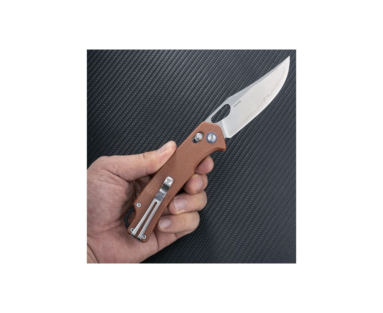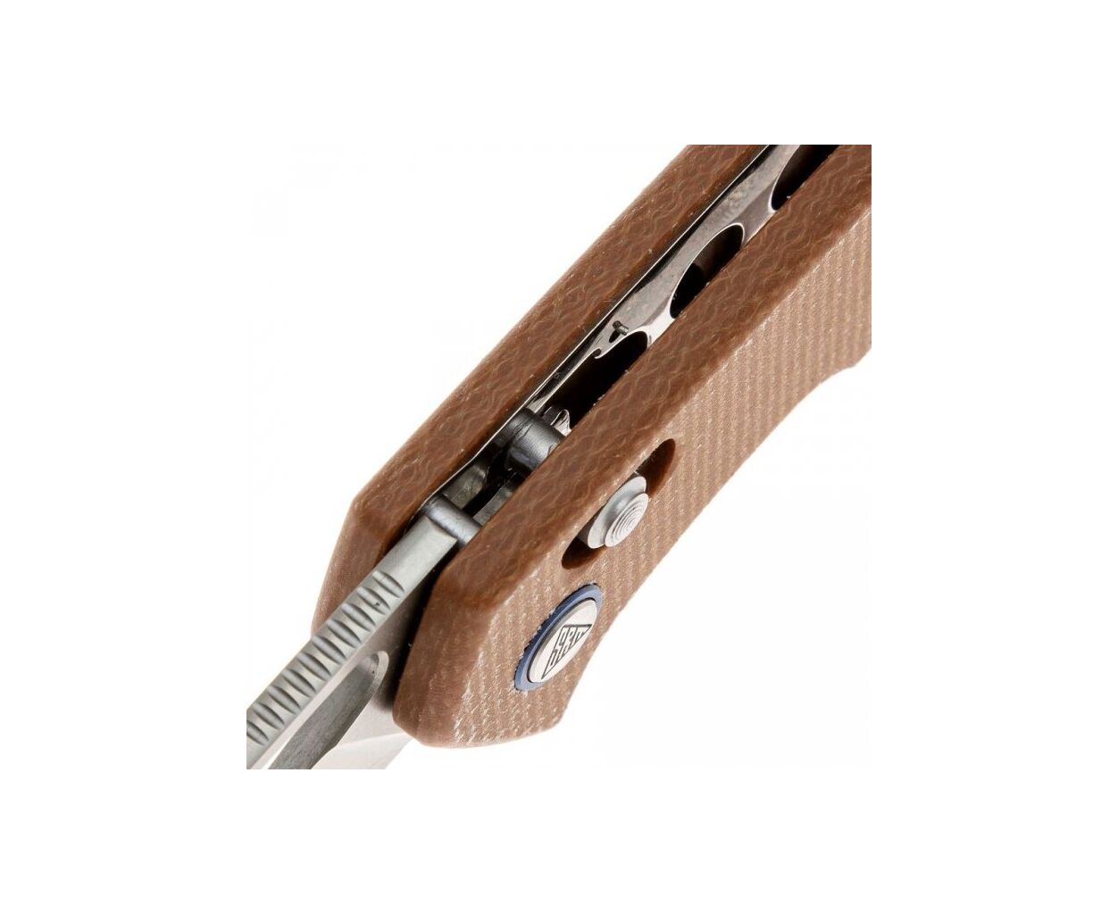 Рукоять выполнена из высококачественного Micarta с внутренними стальными направляющими (liners) из 420 нержавеющей стали. Такая конструкция обеспечивает надежное сцепление и комфорт даже в сложных условиях эксплуатации. Компактный и легкий — вес ножа составляет всего 86 г, что делает его удобным для ежедневного ношения и быстрого реагирования на любые задачи.