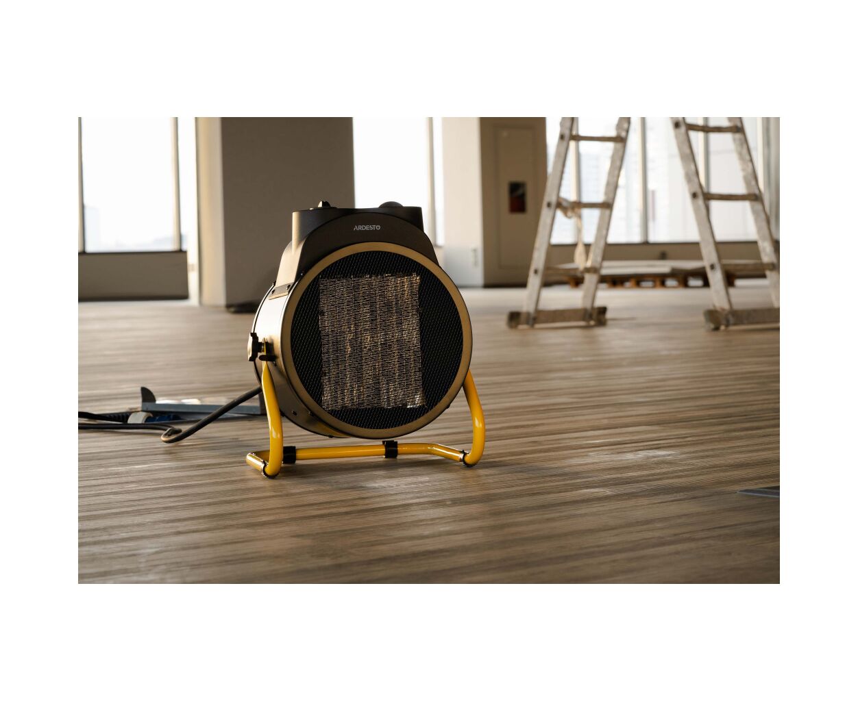 Дизайнерское решение с использованием стильного чёрного корпуса делает обогреватель не только функциональным, но и привлекательным элементом интерьера. Компактность и легкий вес позволяют без усилий переносить и устанавливать его в любой части помещения, обеспечивая мобильность, необходимую в динамичных рабочих условиях.