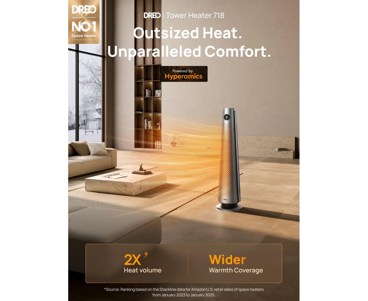 Обогреватель Dreo DR-HSH008 — это инновационный тепловентилятор, который впечатляет своей мощностью и эргономичным дизайном. Благодаря керамическому нагревательному элементу мощностью 2000 Вт, это устройство способно моментально создать комфортную температуру в помещениях площадью до 25 квадратных метров. Способность обеспечить равномерное распределение тепла и 120° охват позволяет обогревателю эффективно работать даже в просторных комнатах.