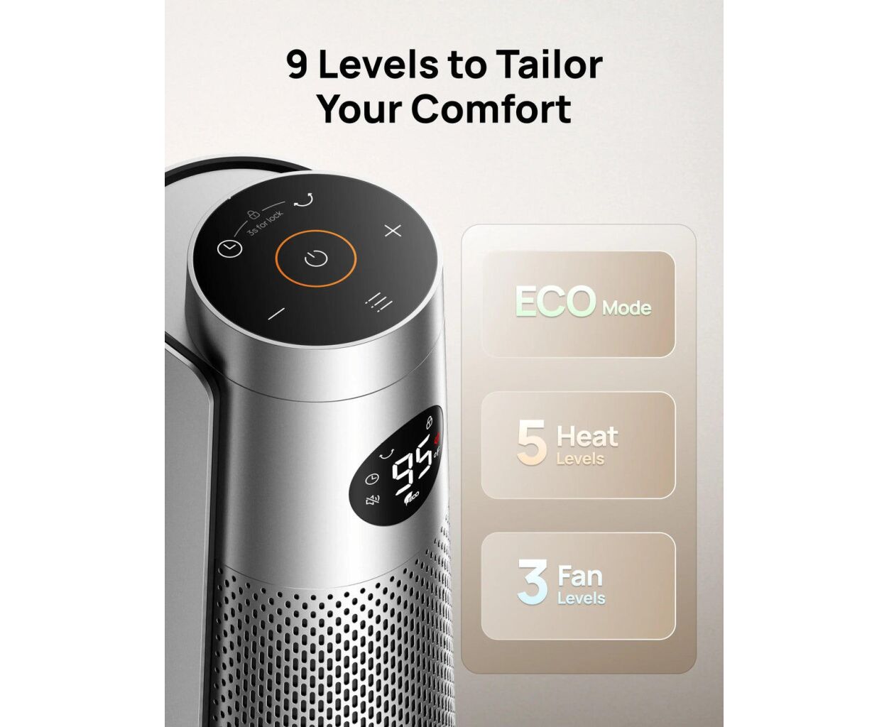 Элегантный серебристый дизайн дополняет как классические, так и современные интерьеры. Сенсорный дисплей удачно интегрирован в корпус и предоставляет быстрый доступ ко всем функциям. Компактный дизайн в сочетании с вентилятором делает Dreo DR-HSH008 не только эстетически привлекательным, но и функционально мощным решением для создания уюта в доме.