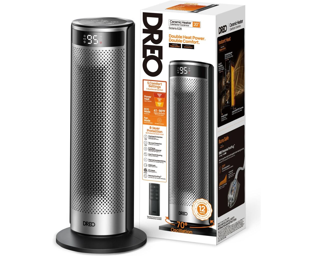 Выбирайте Dreo DR-HSH028 — и наслаждайтесь мгновенным теплом, максимальным комфортом и безопасностью без компромиссов. Это тепловентилятор, который создает уютную атмосферу за считанные минуты, подчеркивая ваш стиль жизни.