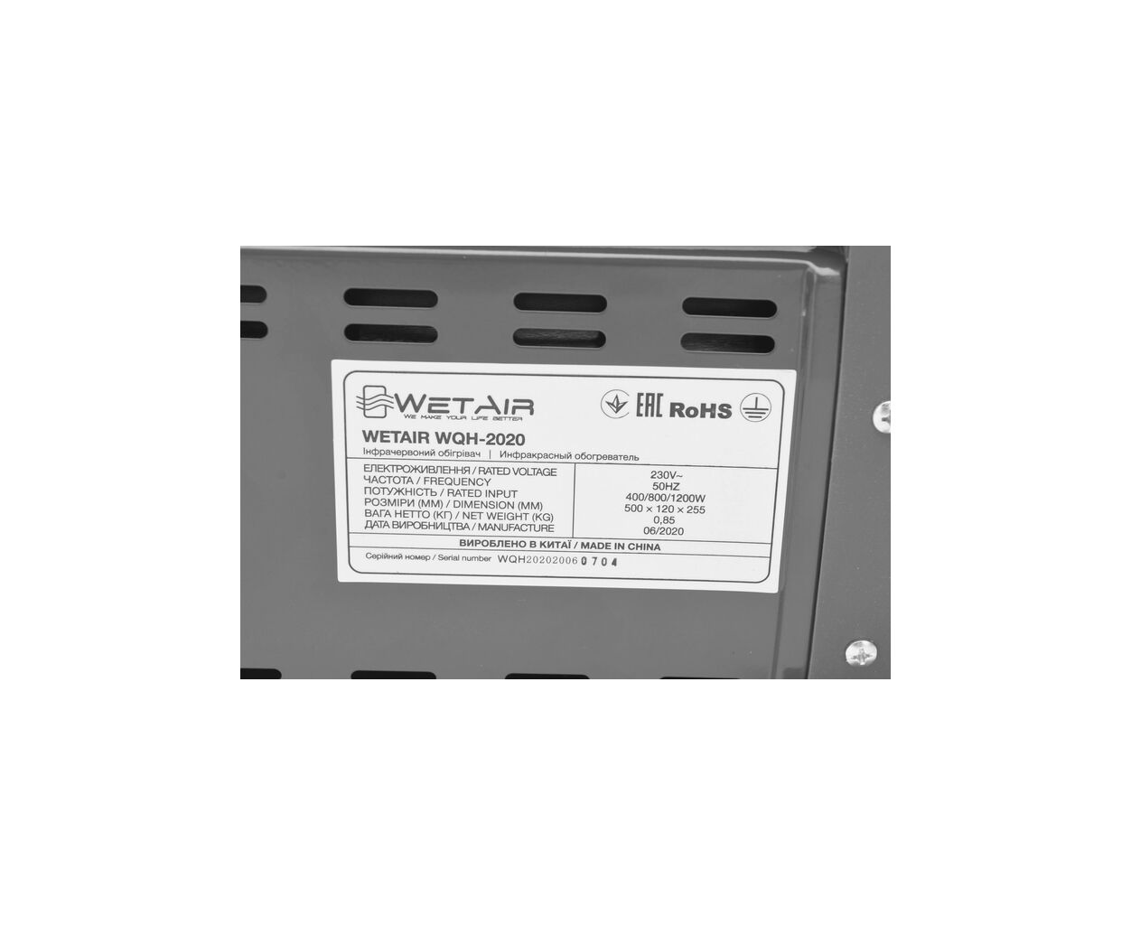Описание Обогреватель WetAir WQH-2020