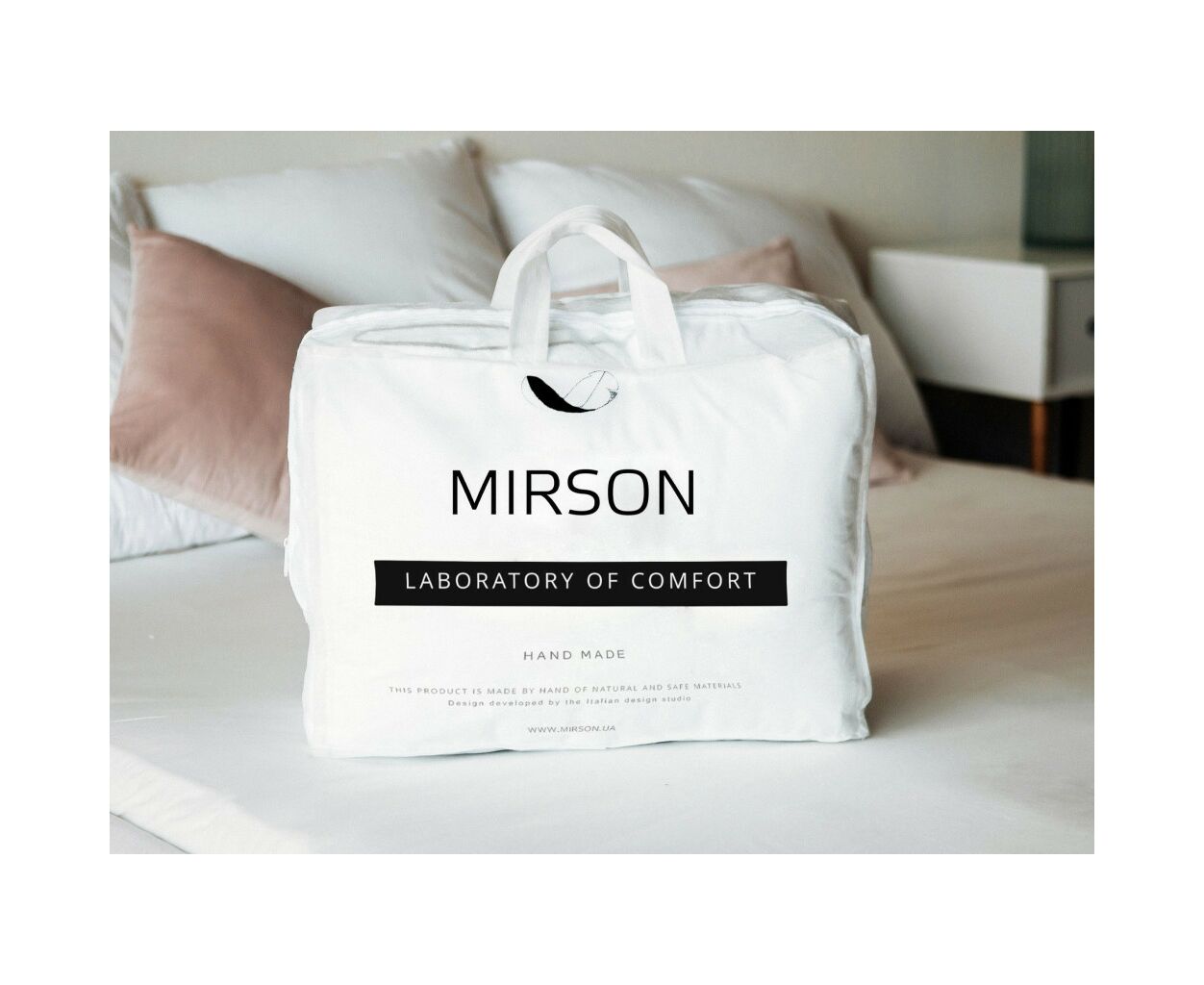 Компания MirSon производит одеяла и подушки только с высококачественных материалов и антиаллергенных экологичных наполнителей. Простота и стиль, уникальность и доступность, дизайн и качество позволили воплотить в жизнь только неповторимые коллекции! Для нас важен каждый клиент, поэтому профессионализм и индивидуальность для MirSon превыше всего!