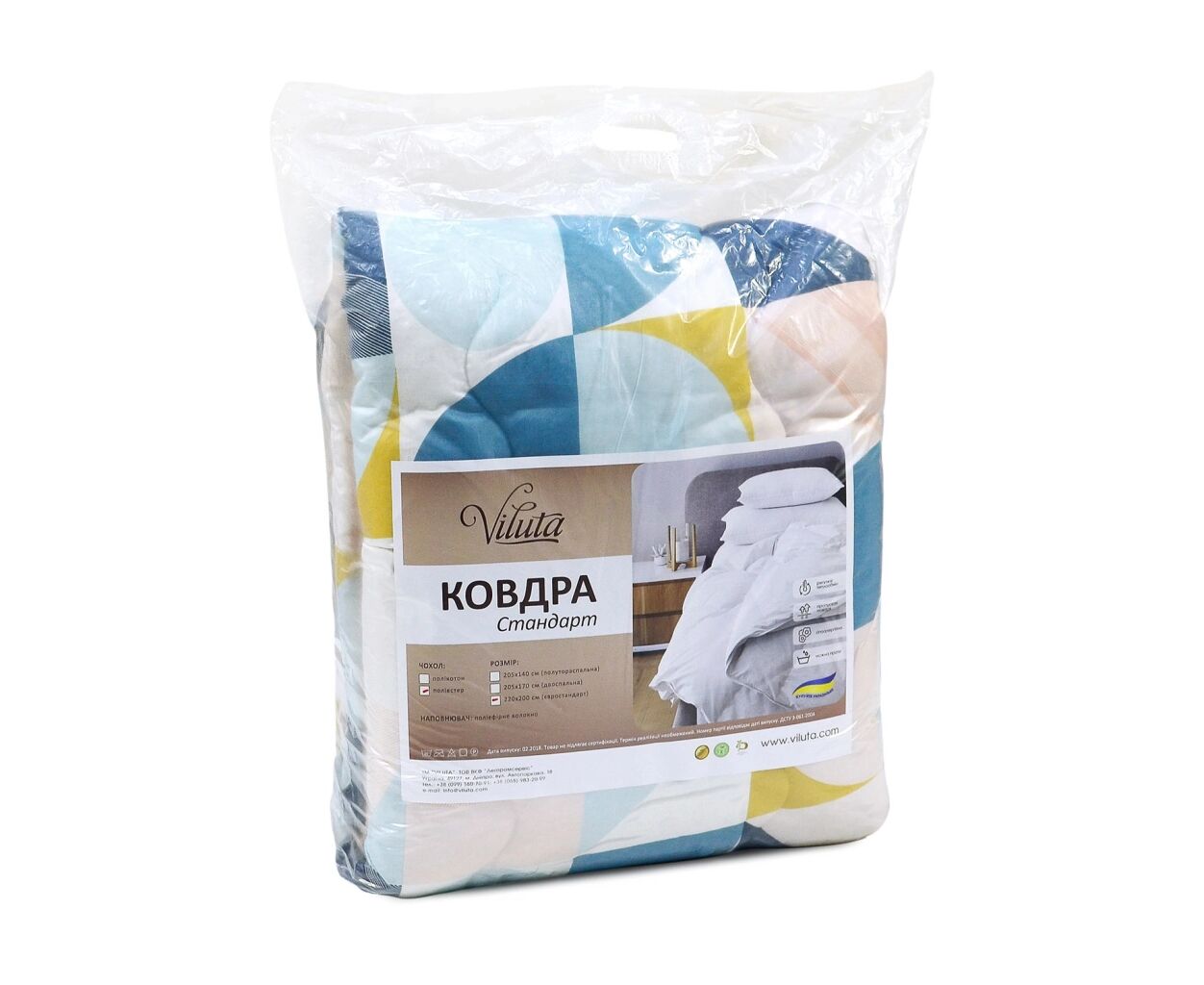 Характеристики Одеяло Viluta силиконовое стеганое Стандарт 200х220 (ковдра_стандарт_220*200)