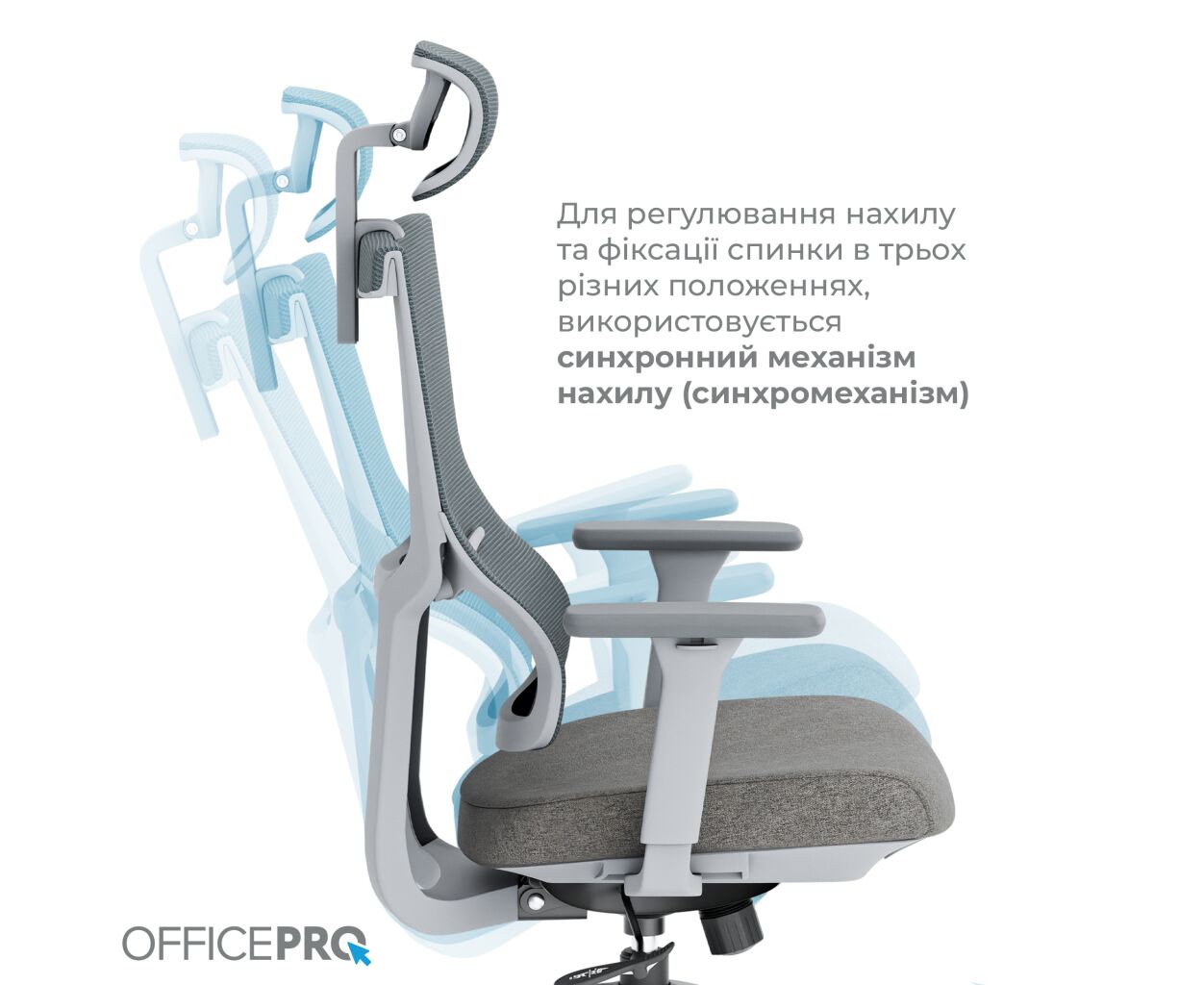 Функция регулировки высоты сиденья и активации/блокировки качания добавляет еще больше возможностей персонализации. Синхронный механизм наклона (синхромеханизм) позволяет фиксировать спинку в трех положениях для идеальной поддержки.
