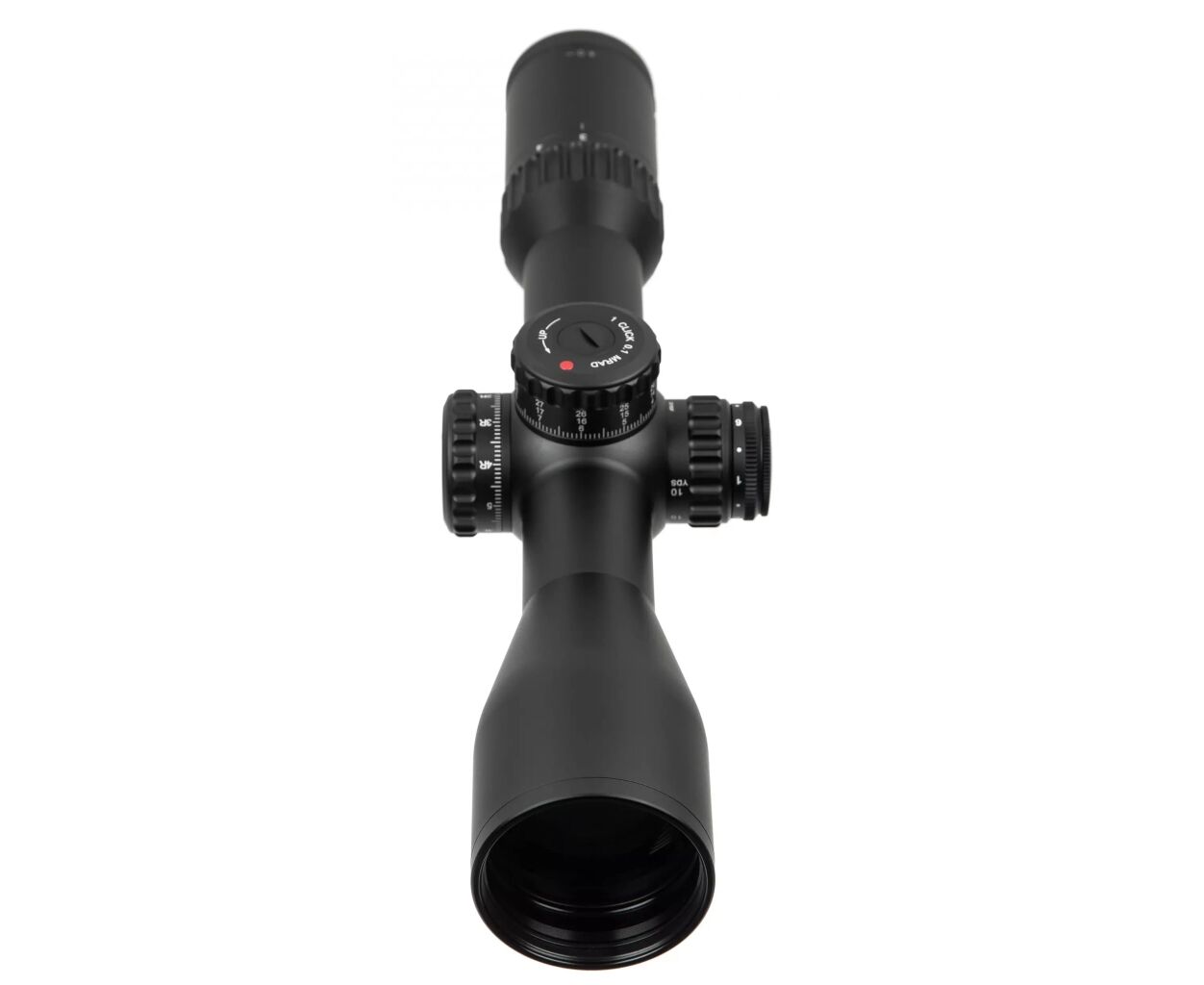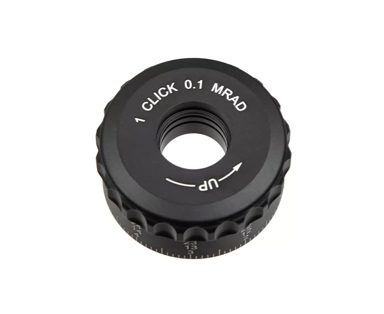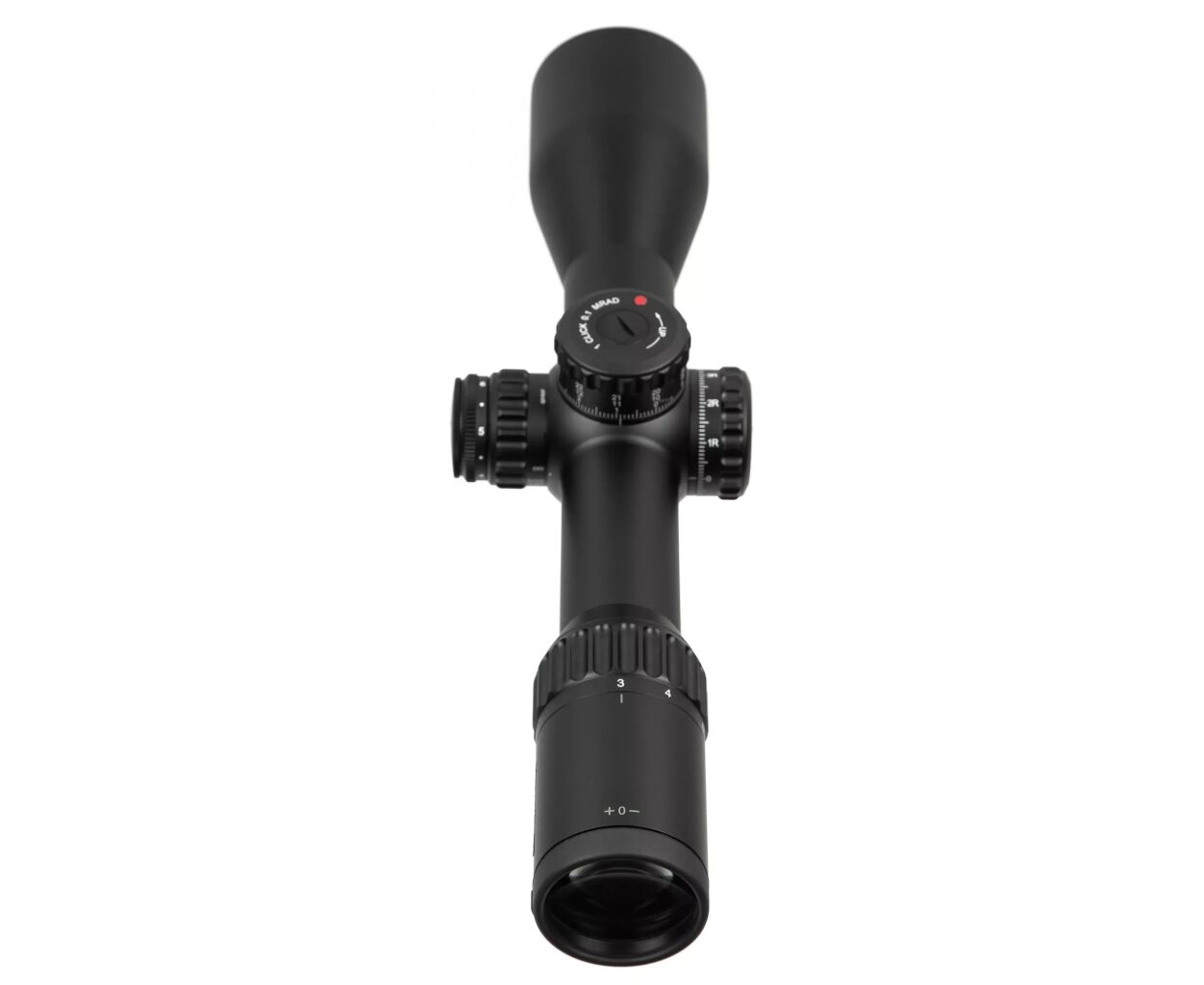 Турельная система выполнена из прочного алюминиевого сплава 7075 T6, устойчива к случайным нажатиям и не цепляется за одежду. Барабаны ввода поправок оснащены системой Zero Stop, блокировкой Turret Lock и шагом 1/10 MI. Диапазон вертикальной коррекции — 44 MIL, по ветру — 16 MIL, что дает широкие возможности для точной настройки при стрельбе на разных дистанциях.
