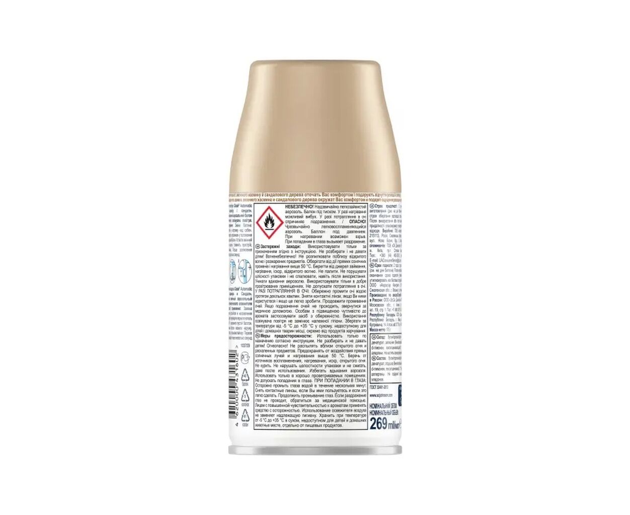 Описание Освежитель воздуха Glade Нежность кашемира и сандал Сменный баллон 269 мл (8690784317115)