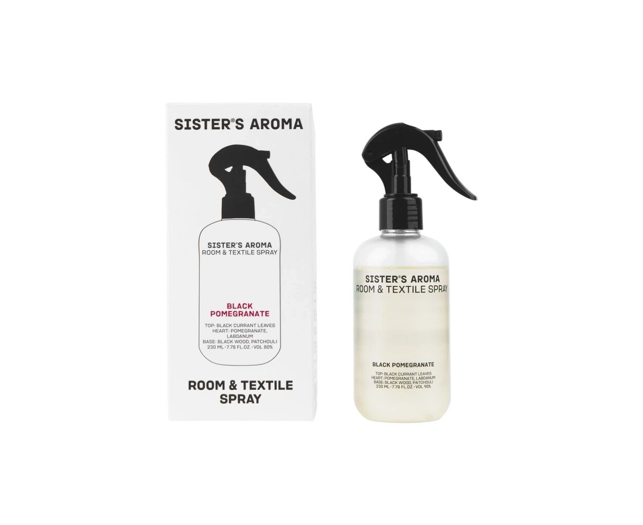 Описание Освежитель воздуха Sister's Aroma Черный гранат Парфюмированный спрей для комнаты и текстиля 230 мл (4820227786022)