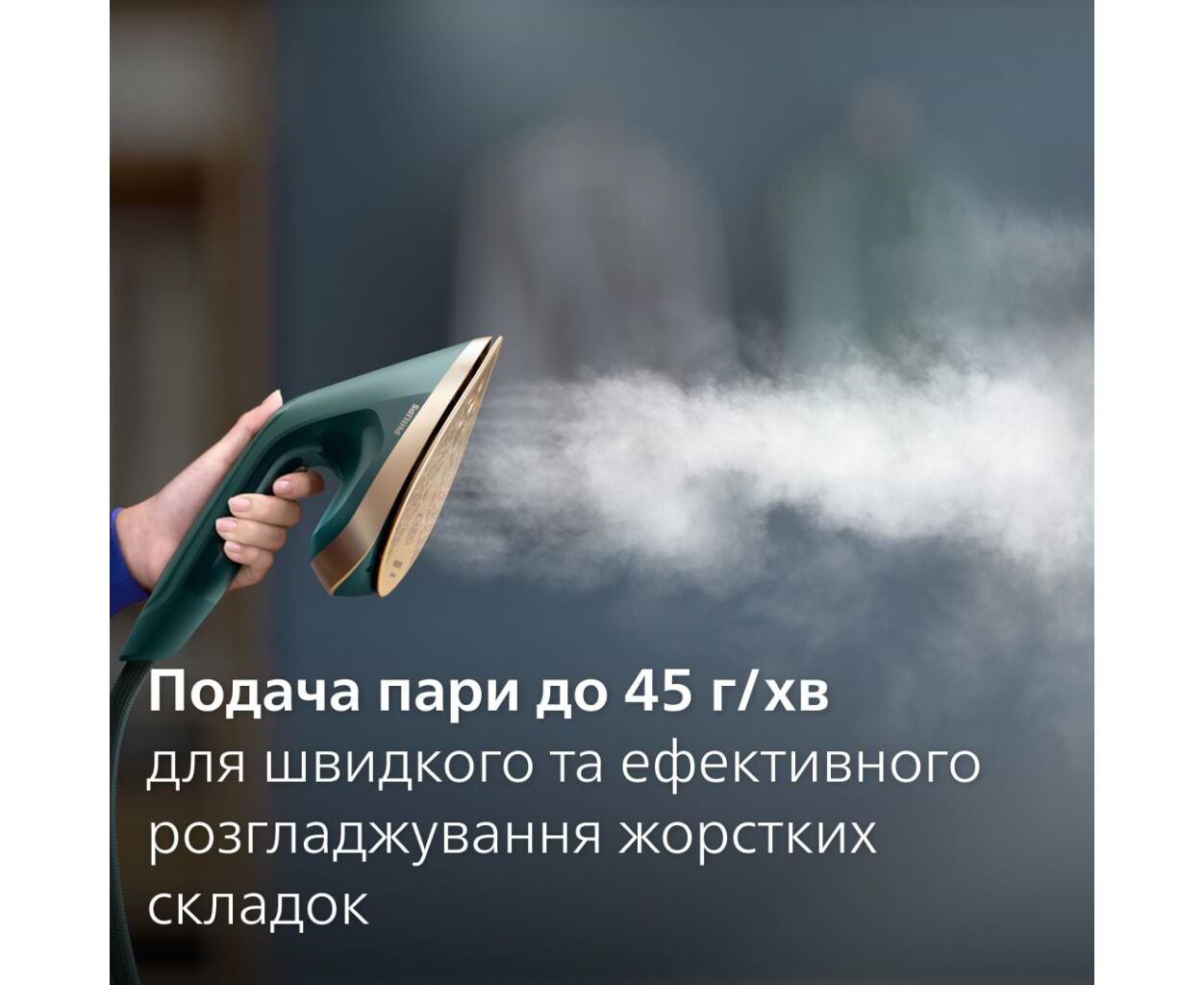Мощный двигатель генерирует до 45 г/мин пара для разглаживания жестких складок, а заостренный наконечник утюга помогает добиться точных результатов.