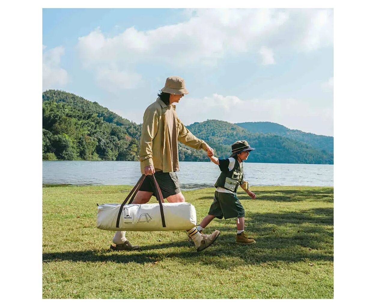 Палатка Naturehike Ango в размере S рассчитана на компанию отдыхающих, которые не желают идти на компромиссы по удобству даже вдали от дома. Просторное внутреннее пространство 200х200 см позволяет свободно разместиться трем взрослым или семье с ребенком, а высота 145 см обеспечивает свободу движений. Ключевая особенность модели – автоматическая конструкция. Благодаря встроенному механизму установки занимает несколько минут и не требует никаких навыков – достаточно расправить, поднять и зафиксировать дуги.