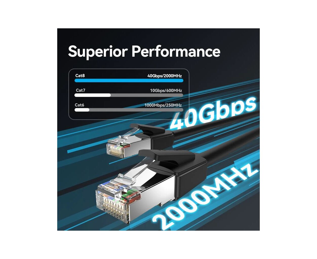 Описание Патч-корд 0.5м, S/FTP cat 8 RJ-45 black Vention (IKKBD)