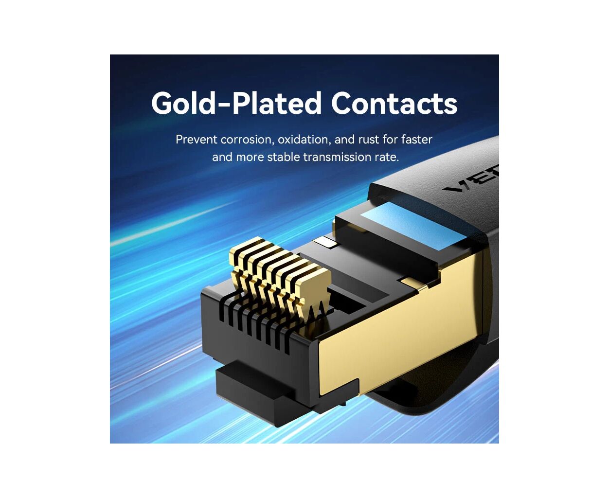 Патч-корд оснащен с двух сторон разъемами-коннекторами RJ45, которые покрыты слоем золота для превосходной передачи данных и долговечности в эксплуатации.