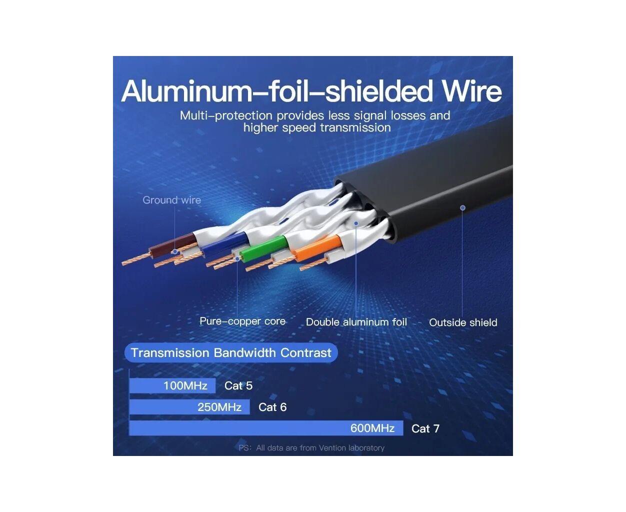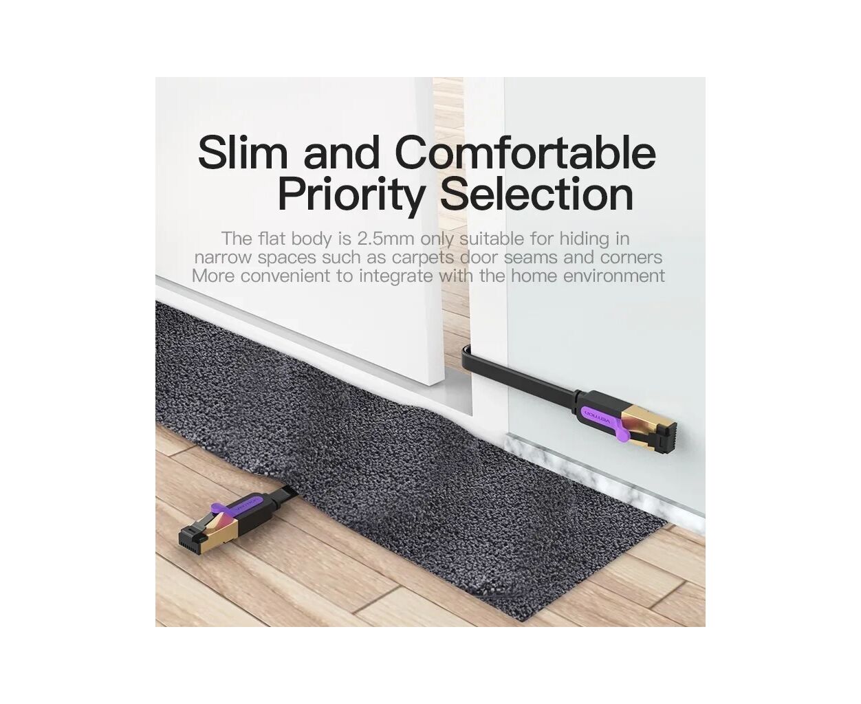 Сетевой кабель Vention Ethernet Flat Cable RJ45 CAT7 предназначен для коммутации компьютерных Ethernet-сетей со стандартами 10BASE-T (10 Мбит/сек), 100BASE-T(x) (100 Мбит/сек), 1000BASE-T(x) (1 Гбит/сек), 10GBASE-T (10 Гбит/сек).