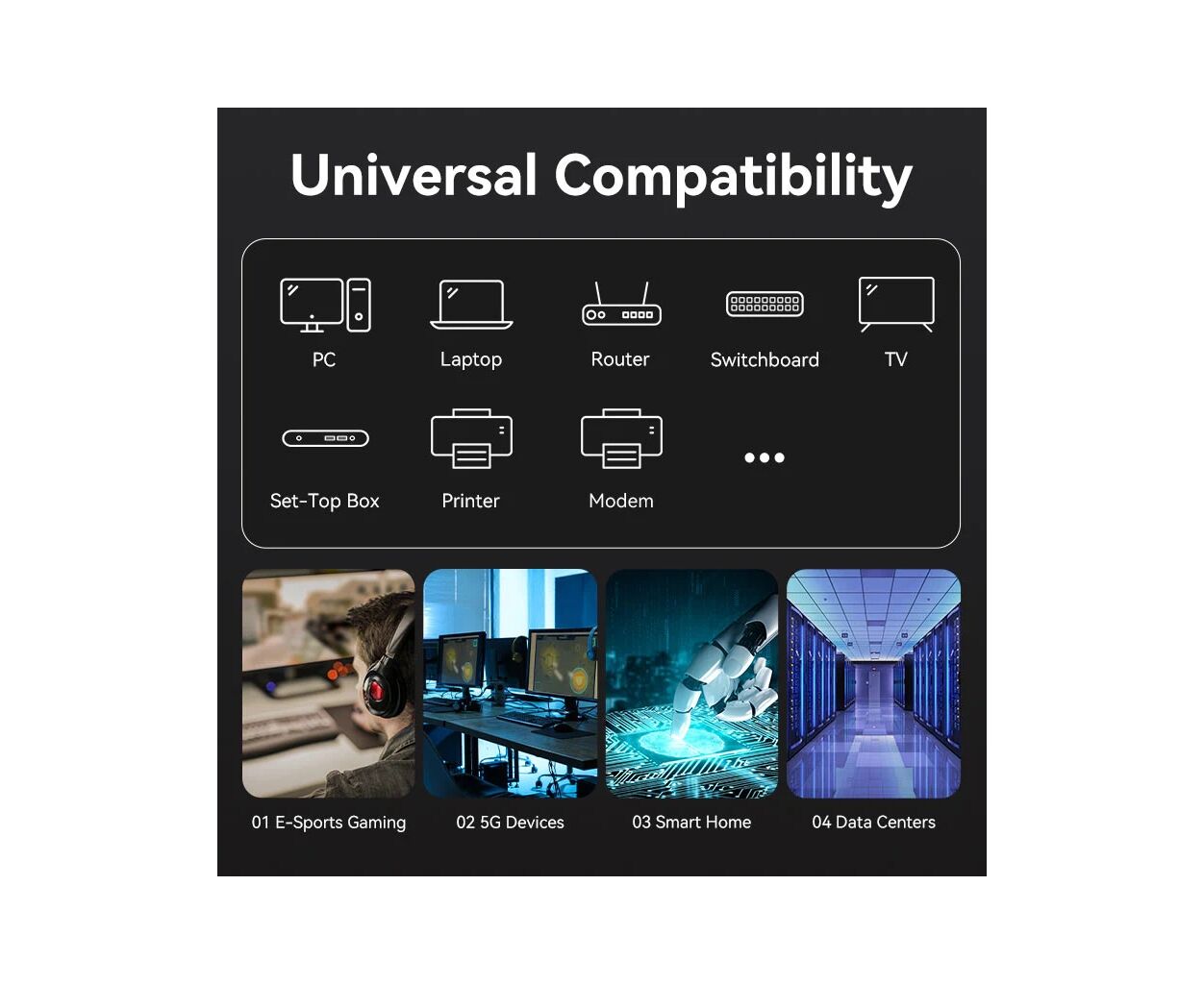 Широкая совместимость: Кабель можно использовать с разнообразными устройствами как в домашних, так и офисных помещениях.