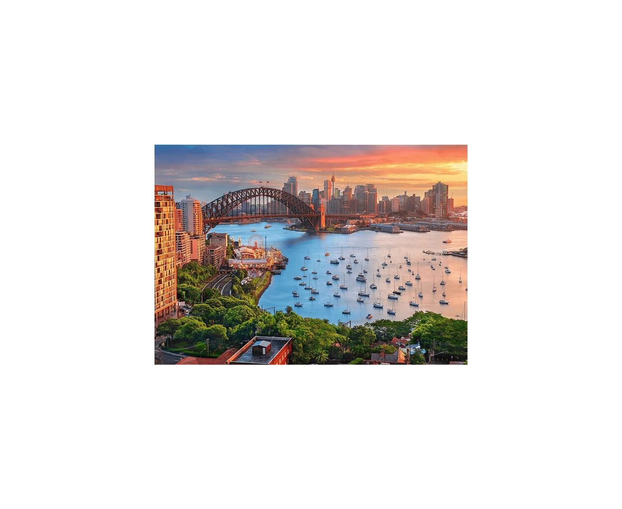 Пазлы на 1000 элементов с изображением Сидней. В сложенном виде размер картинки составляет 68х48 см. Высокое качество, насыщенность цветов и безопасность при сборке пазлов обеспечивает специальный каландрированный картон, отражающий свет и покрытый экологичными красками.