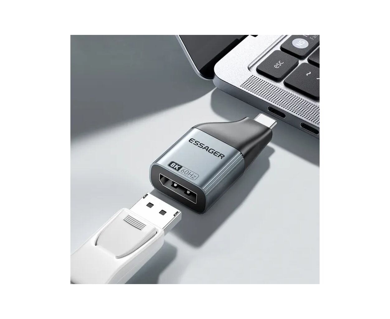 ESSAGER DP to Type-C Adapter — отличный выбор для тех, кто стремится повысить функциональность своих устройств, получая высокое качество изображения и звука при работе или просмотре мультимедиа.
