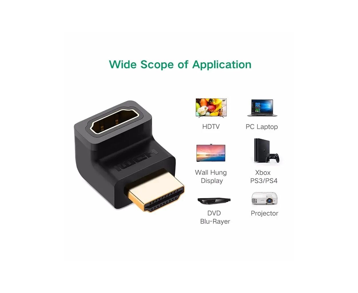 Описание Переходник HDMI M to HDMI F 90° corner UP HD112 black UGREEN (20110)