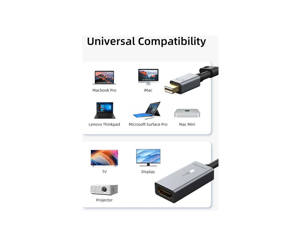 Характеристики Переходник miniDisplayPort M to HDMI F 0.15m 4K60Hz Cabletime (CA915347)