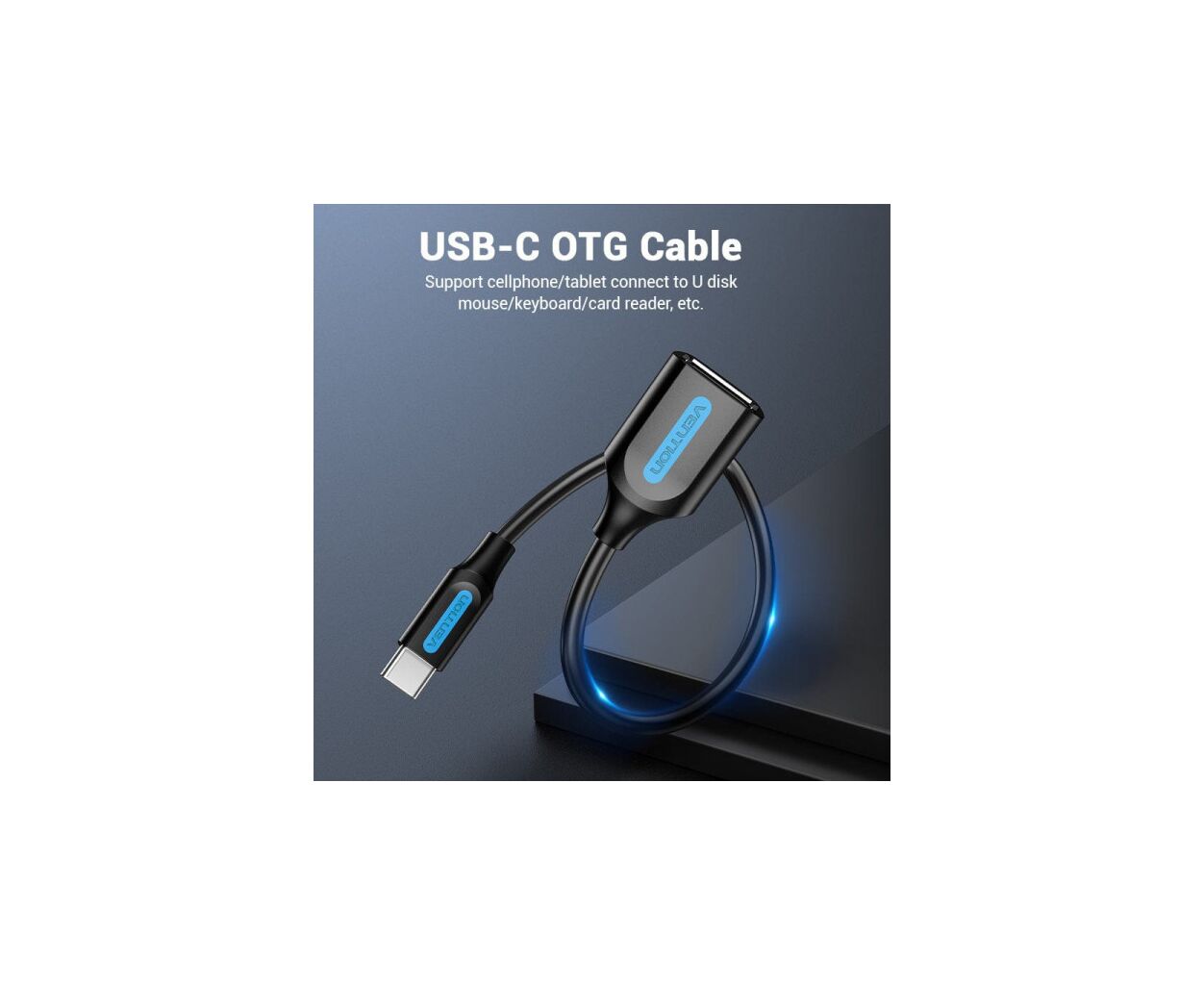 Описание Переходник OTG USB 2.0 AF to USB-C 0.15m black VENTION (CCSBB)