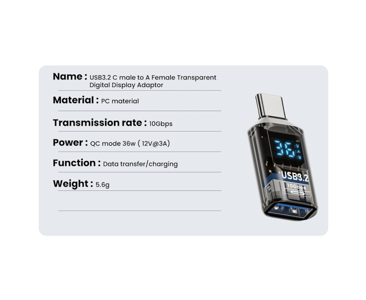 OTG USB 3.2 AF to USB-C M 10Gbps QC 36W with displ