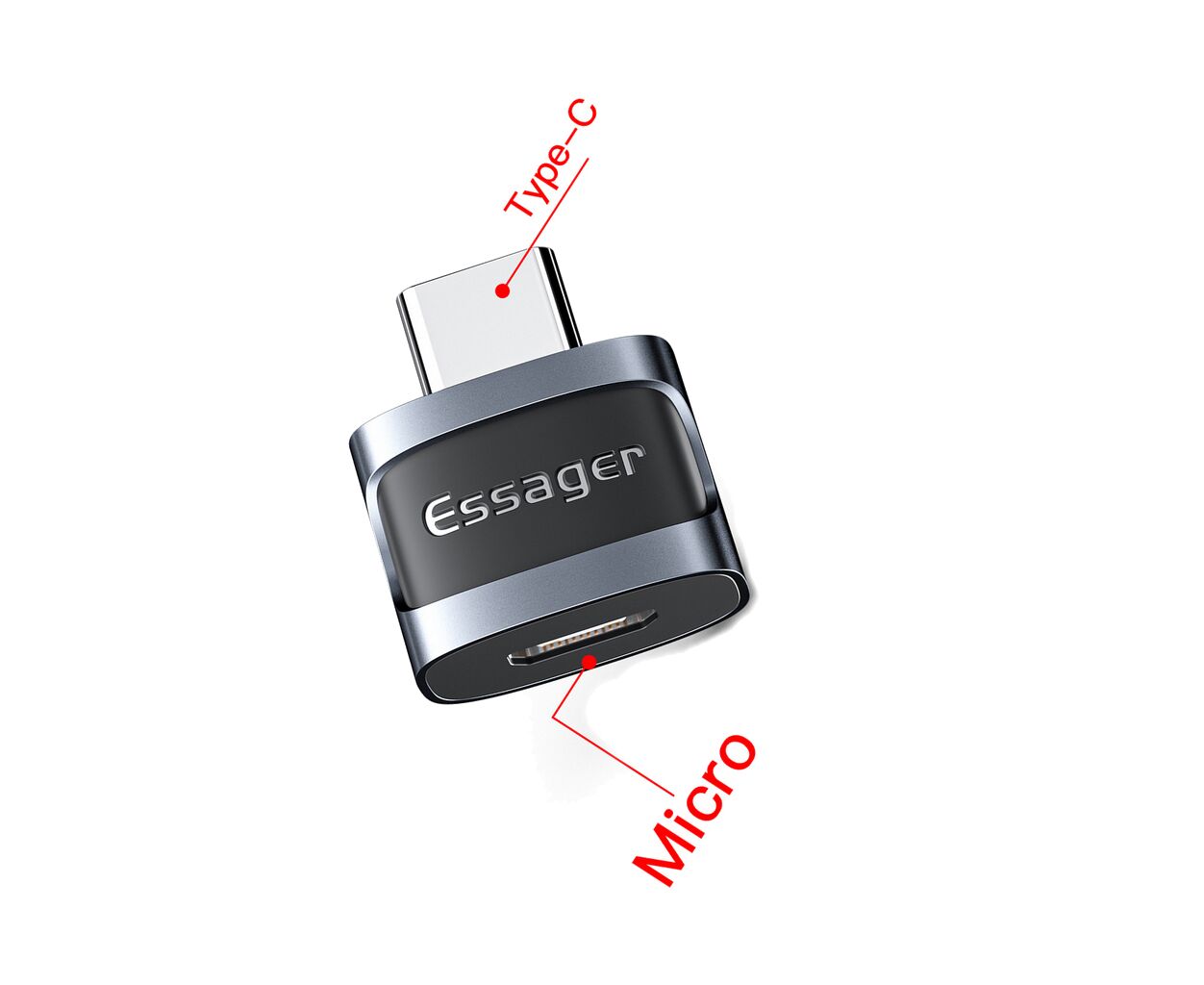 Описание Переходник USB-C M to Micro 5P F gray Essager (EZJMC-XL01)