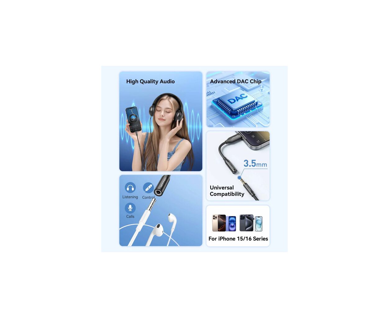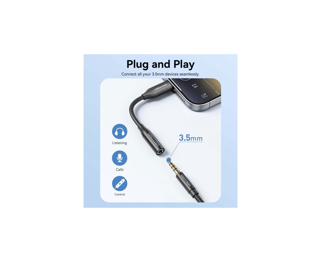 Описание Переходник USB-C to 3.5mm M black VENTION (BIIBA)