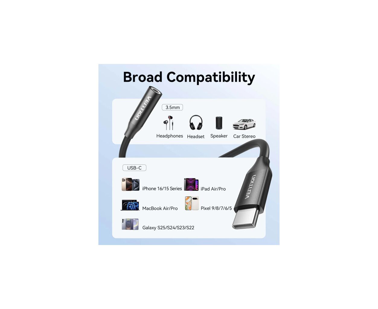 Переходник USB-C to 3.5mm M black VENTION (BIIBA)