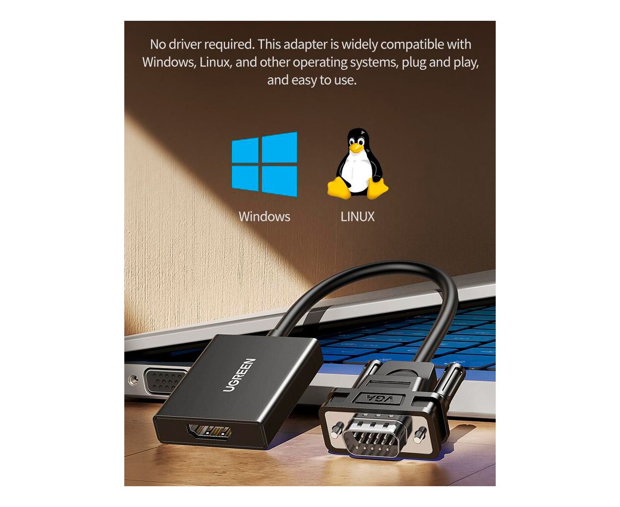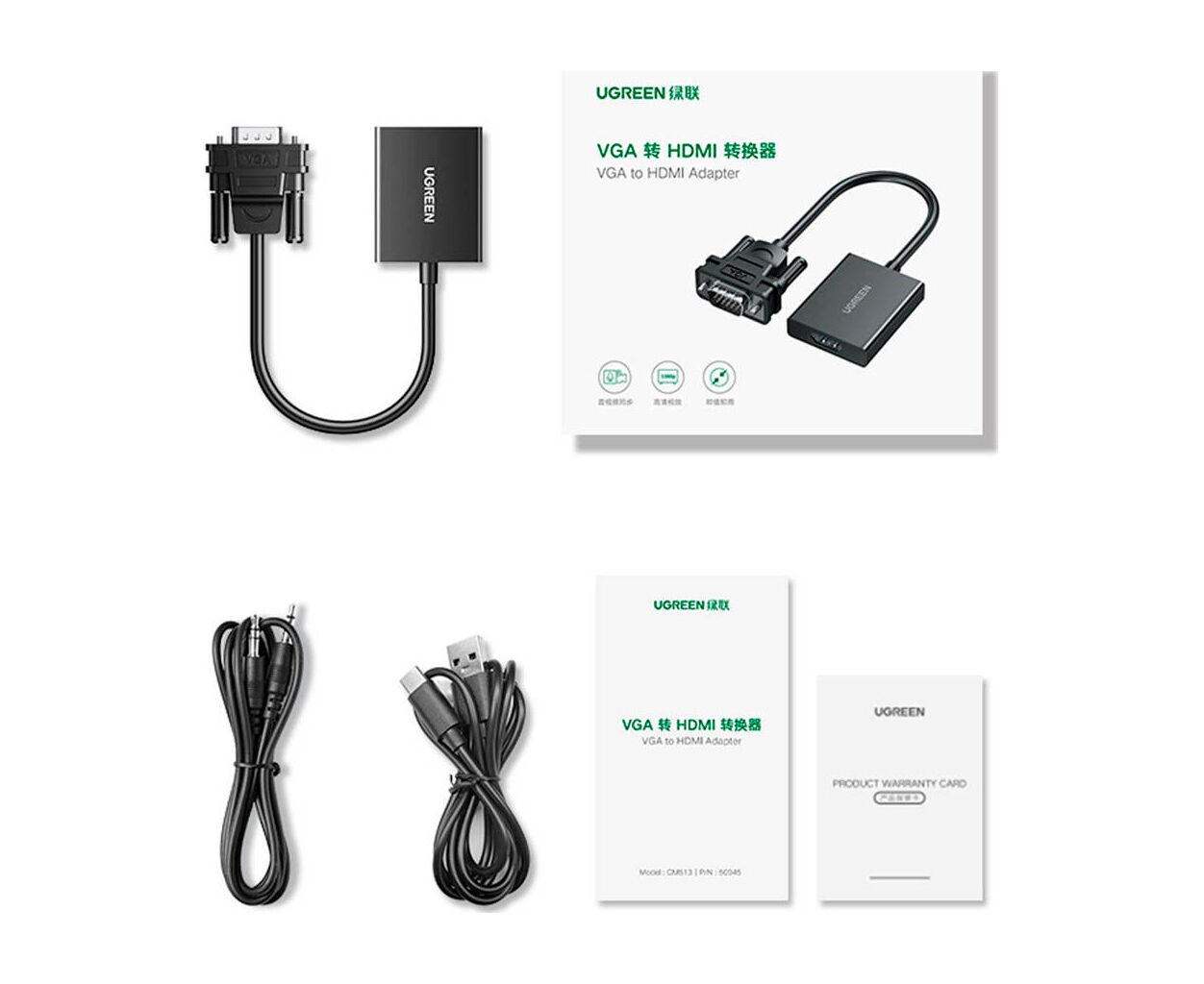 Описание Переходник VGA M to HDMI F CM513 black UGREEN (50945)