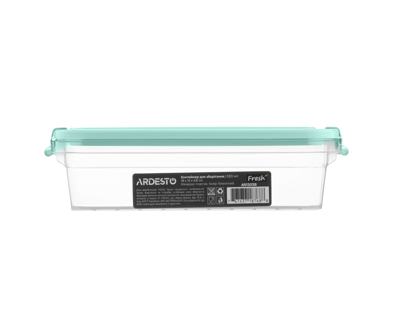 Пищевой контейнер Ardesto Fresh 0.52л, пластик, прямокутна, блакитний (AR1303B)