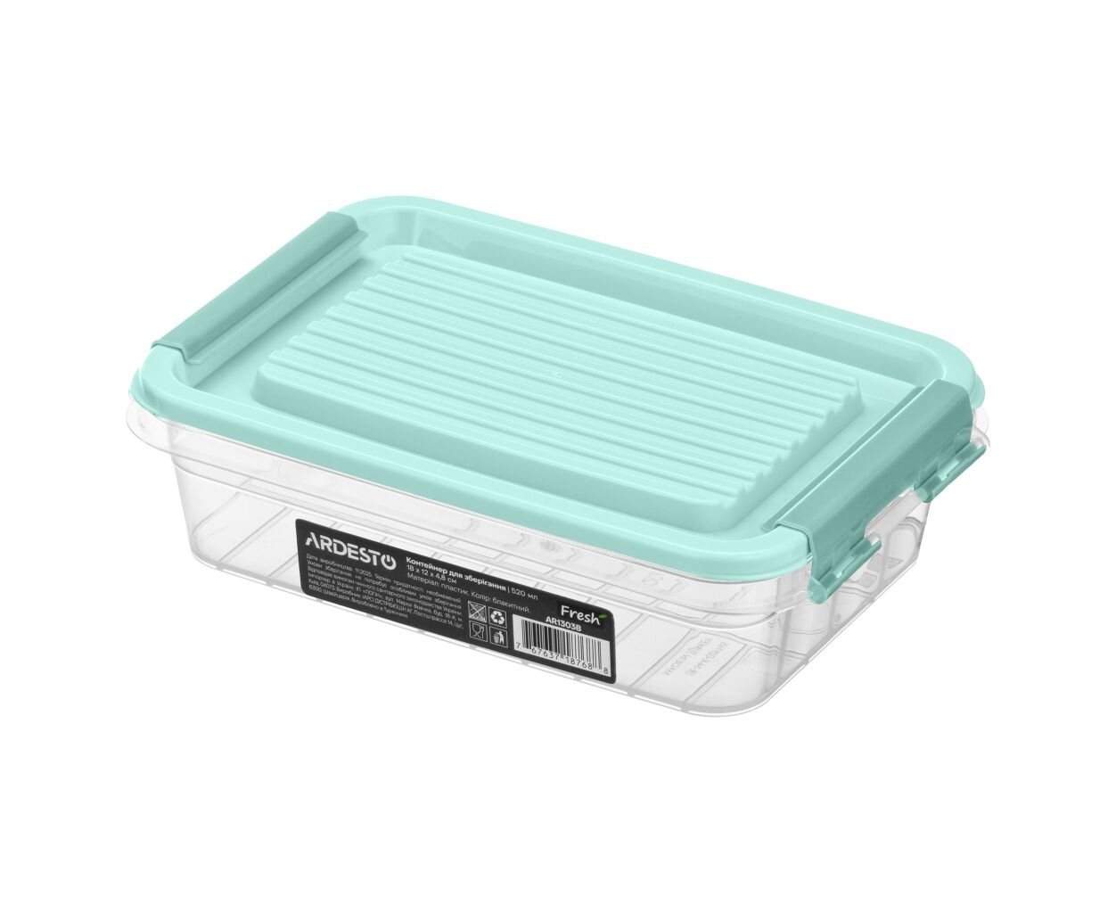 Описание Пищевой контейнер Ardesto Fresh 0.52л, пластик, прямокутна, блакитний (AR1303B)