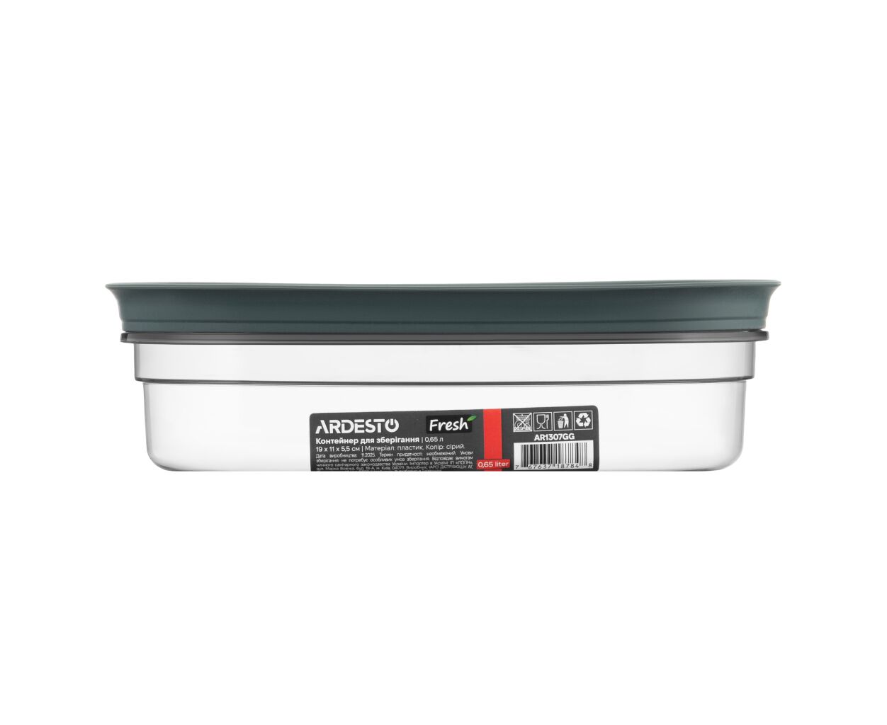Пищевой контейнер Ardesto Fresh 0.65л, пластик, прямокутна, сірий (AR1307GG)