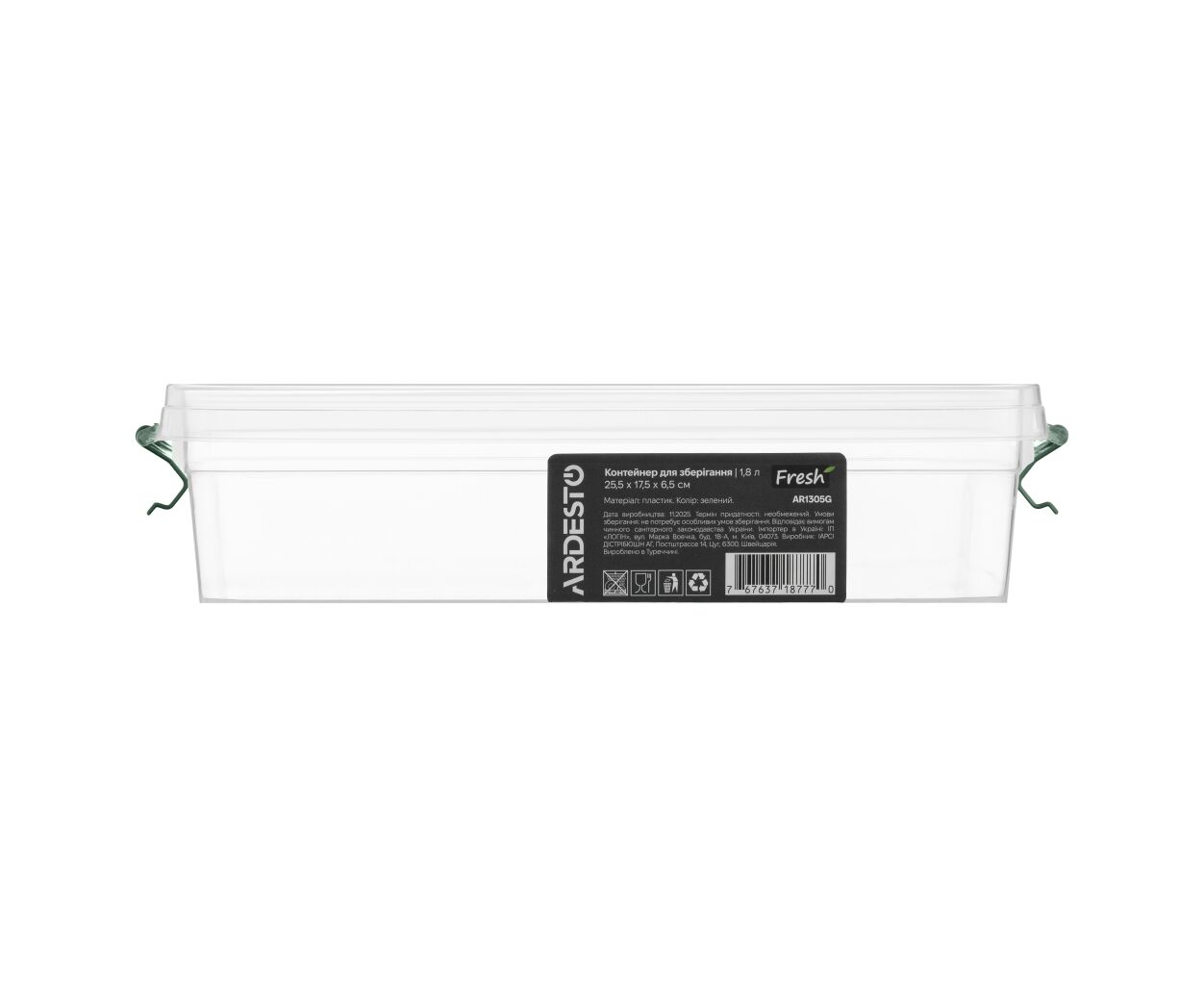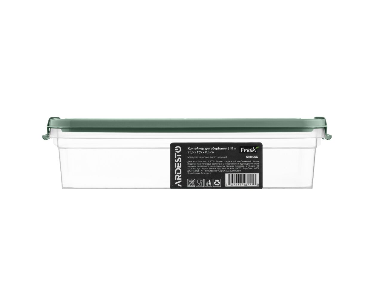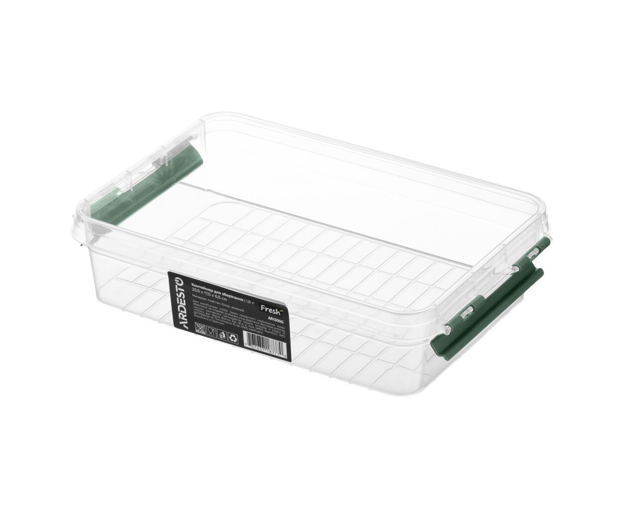 Пищевой контейнер Ardesto Fresh 1.8л, пластик, прямокутна, зелений (AR1305G)