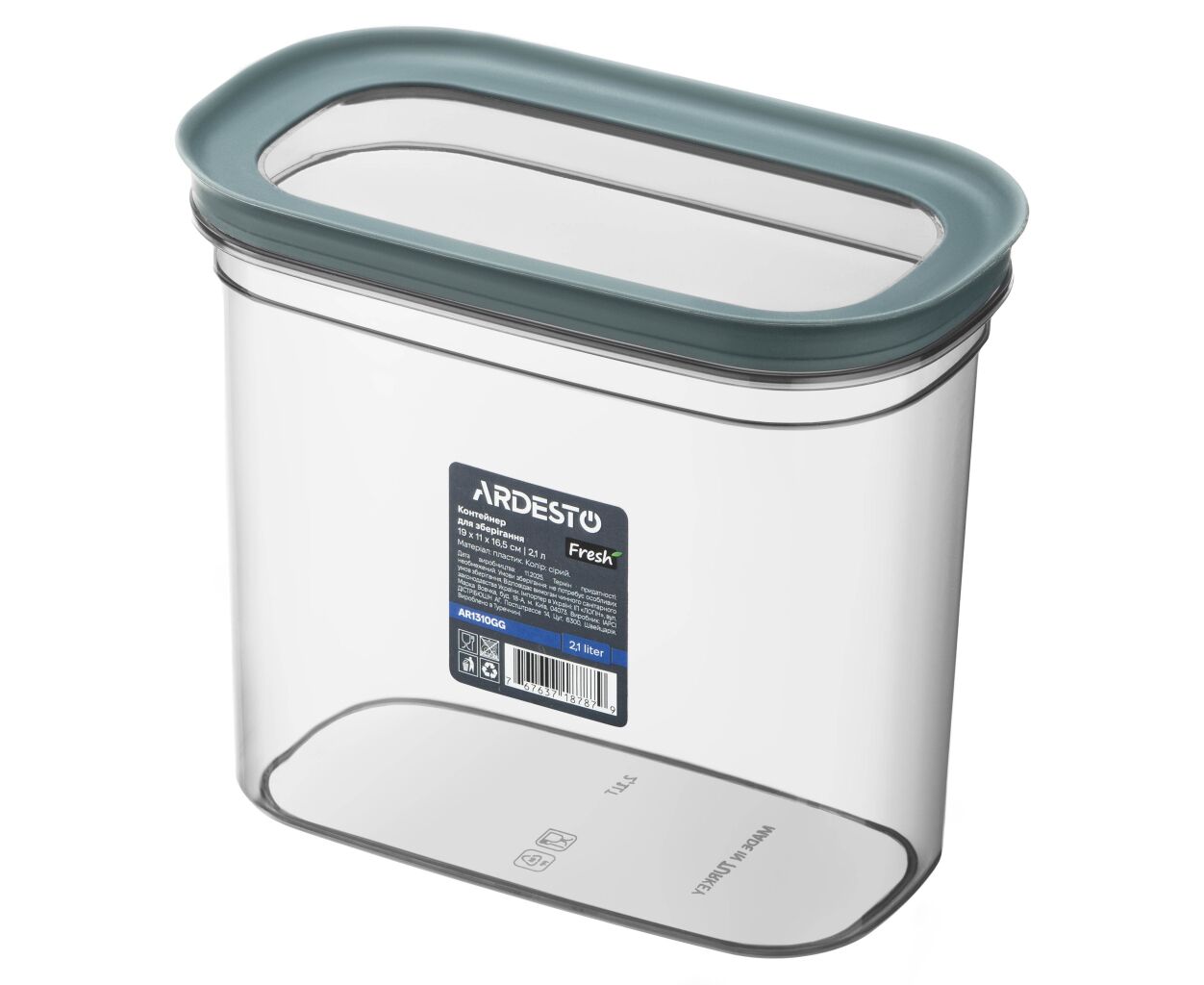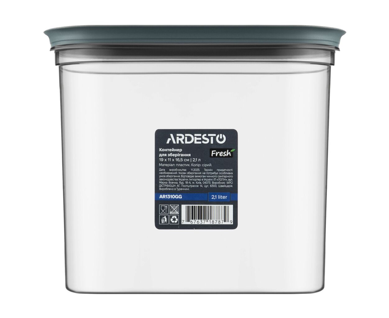 Пищевой контейнер Ardesto Fresh 2.1л, пластик, прямокутна, сірий (AR1310GG)