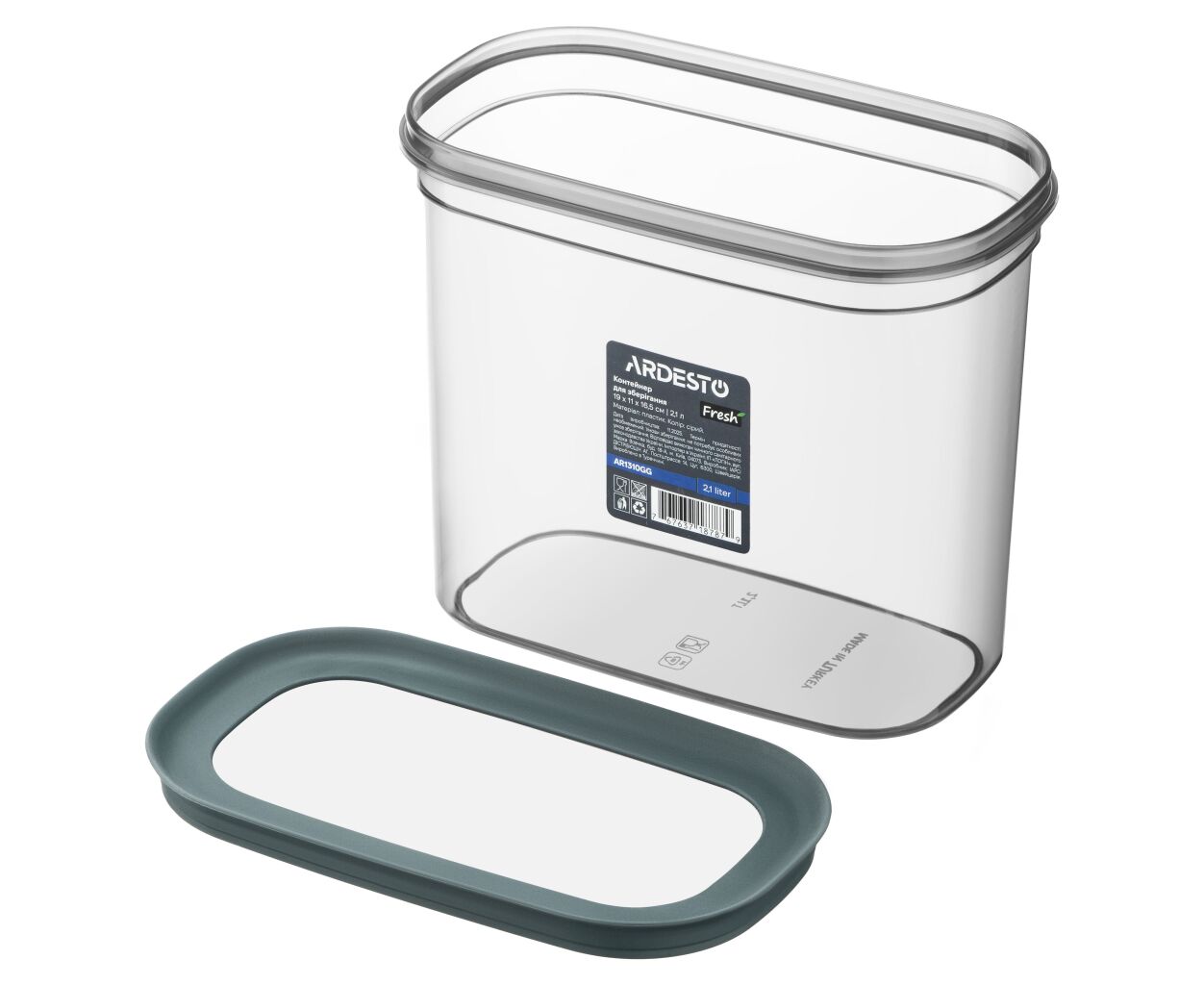 Описание Пищевой контейнер Ardesto Fresh 2.1л, пластик, прямокутна, сірий (AR1310GG)