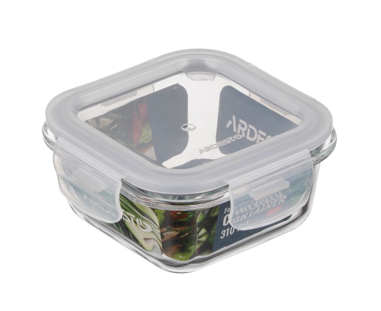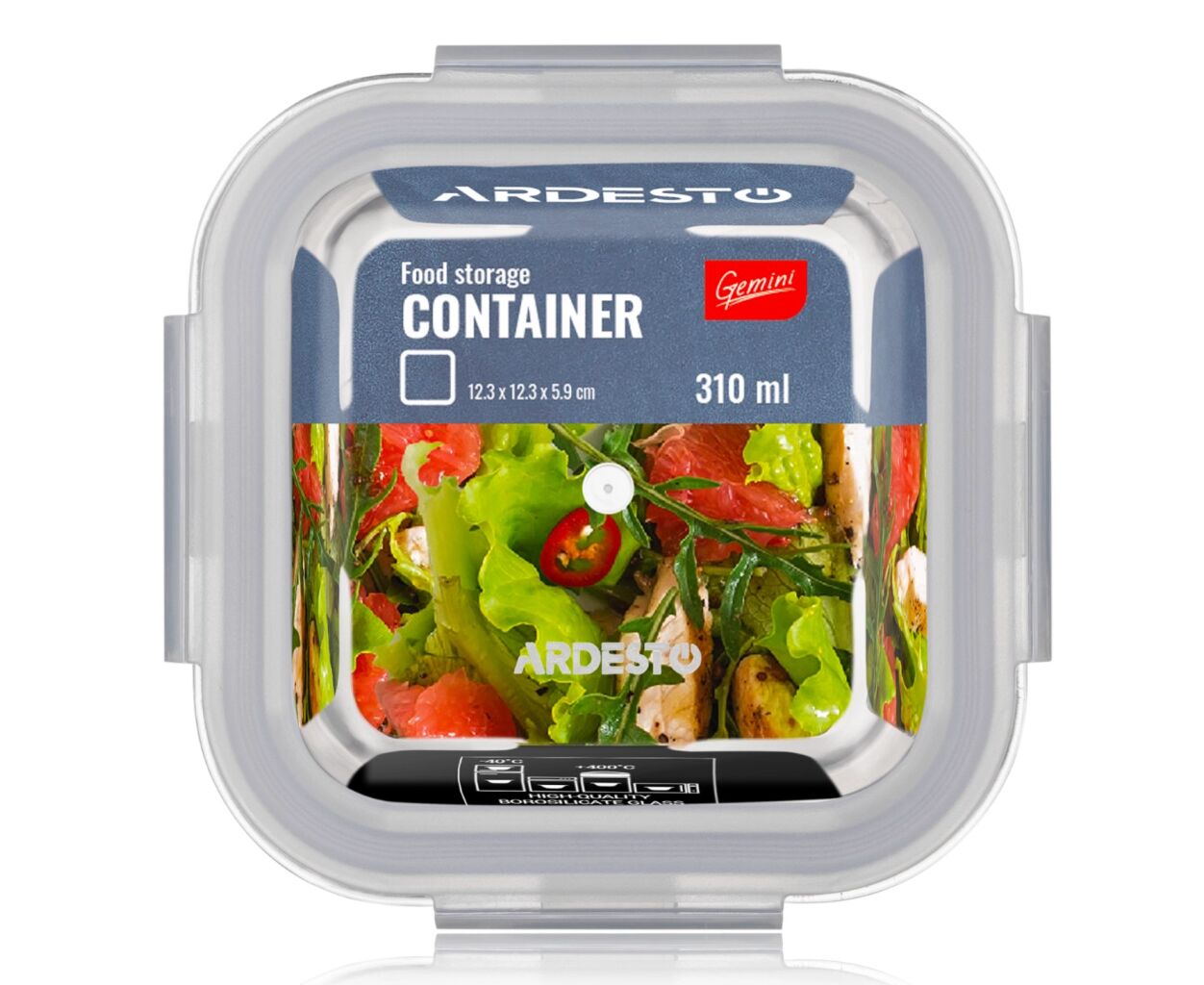 Описание Пищевой контейнер Ardesto Gemini квадратний, 0.31л, боросилікатне скло, прозорий (AR1230BSQ)