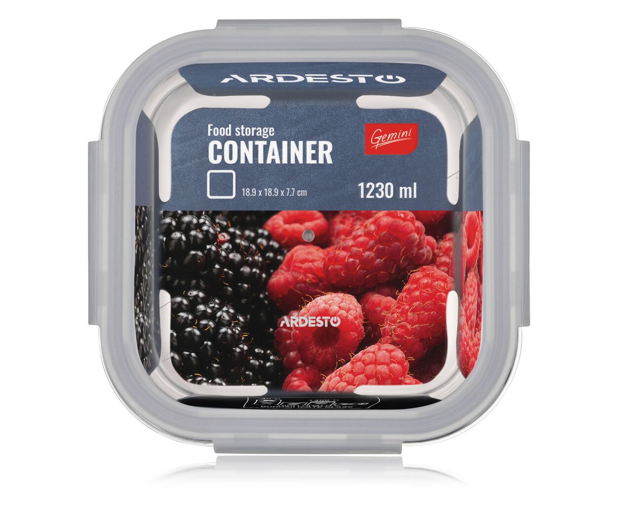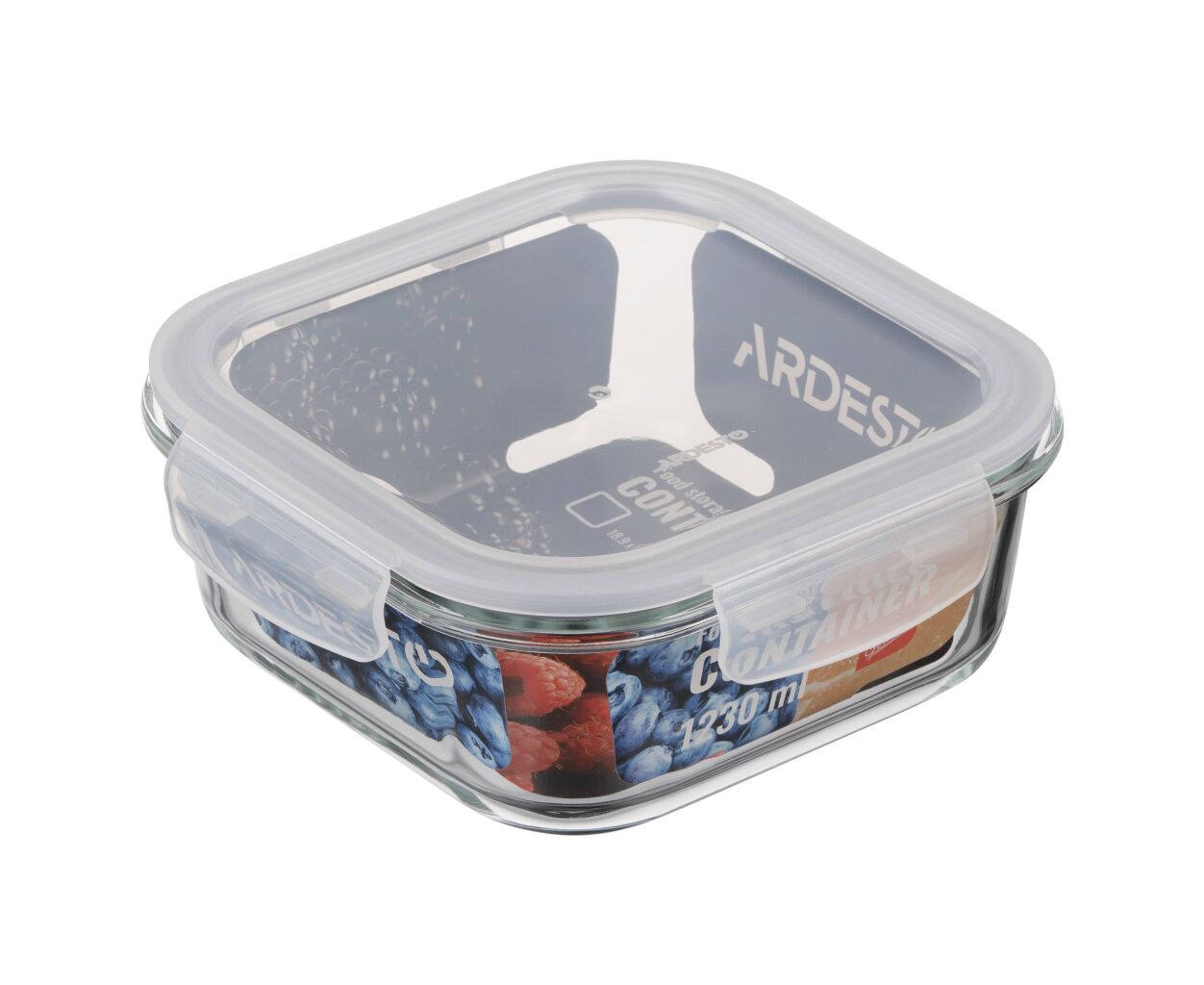 Описание Пищевой контейнер Ardesto Gemini квадратний, 1.23л, боросилікатне скло, прозорий (AR1212BSQ)