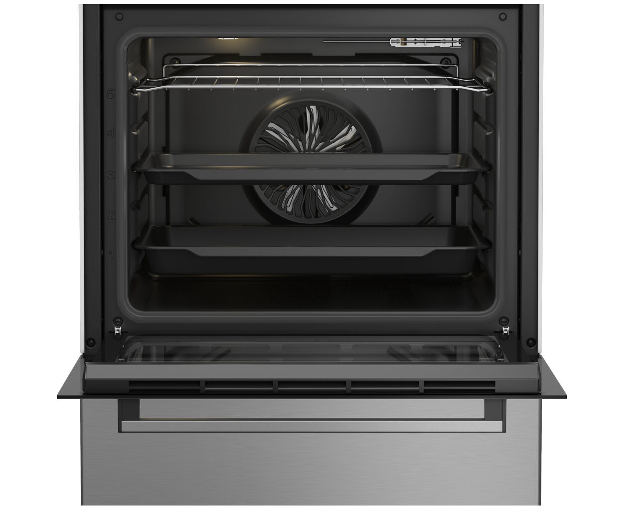 Тип - электрическая, количество конфорок - 4, тип духовки - электрическая, Гриль - есть, электрический, Конвекция - есть, рельефные, нижний нагрев, верхний + нижний нагрев, верхний + нижний нагрев + конвекция, гриль, нижний нагревательный элемент и вентилятор, быстрый нагрев духовки, малый гриль + конвекция , есть, 85 см, 60 см, 60 см, 49.9 кг, нержавеющая сталь
