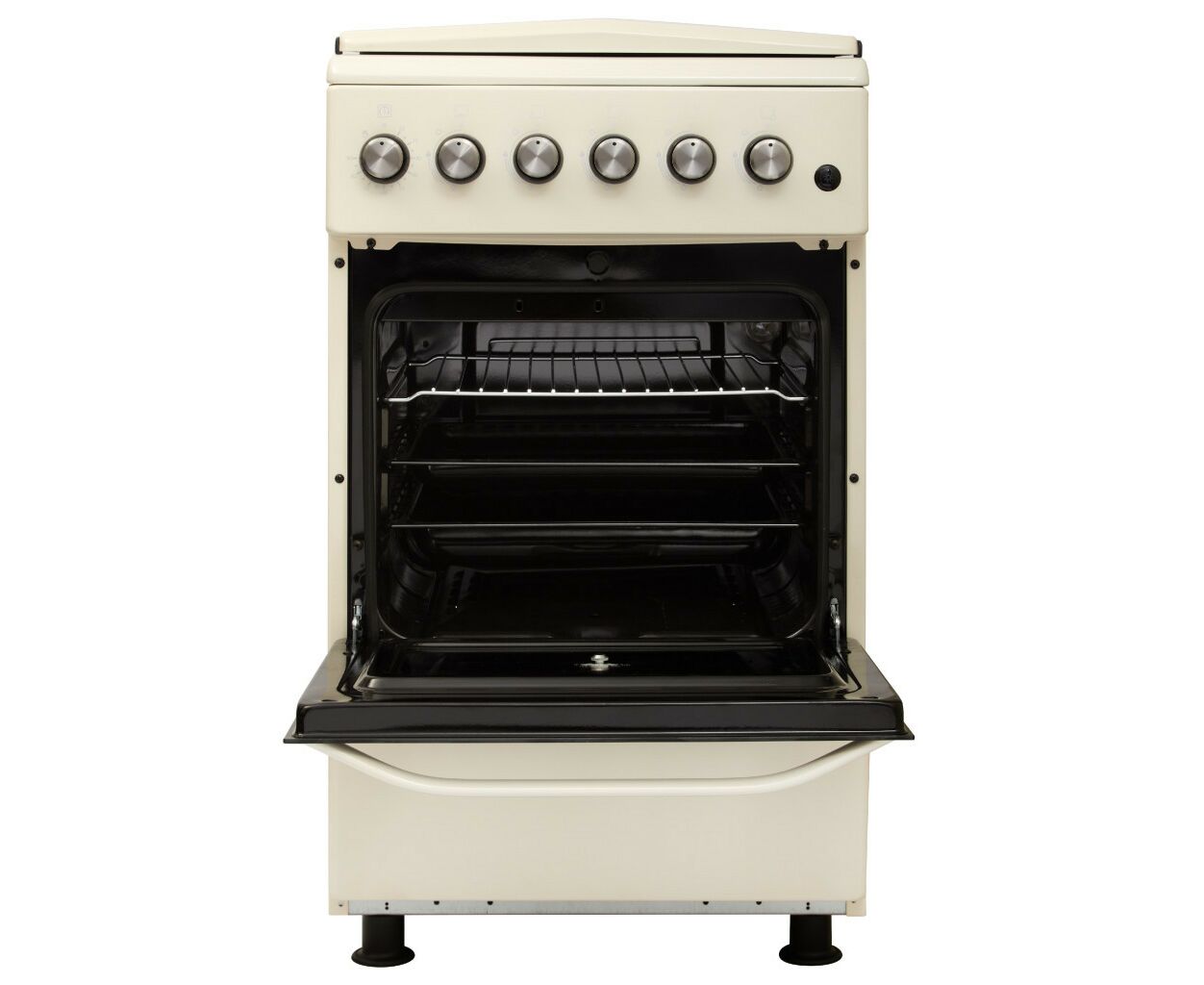 ELEYUS CAST 5001 – кухонная плита с газовой варочной поверхностью и газовым духовым шкафом объемом 50 л. Металлическая крышка защищает стену от загрязнений при готовке, а регулируемые ножки позволяют изменить высоту плиты и надежно ее установить.