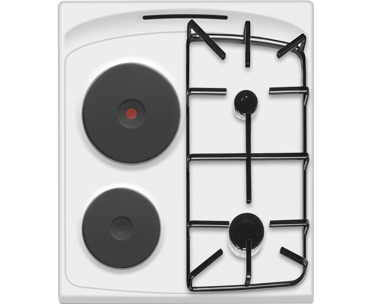 Тип - комбинированная (газ+электро), количество конфорок - 4, тип духовки - электрическая, Гриль - есть, электрический, Конвекция - есть, разморозка, проволочные, нижний нагрев, верхний + нижний нагрев, гриль, вентилятор + верхний нагрев, гриль + верхний нагрев + вентилятор, размораживания, быстрый нагрев духовки, 85 см, 50 см, 60 см, 34.5 кг, белый