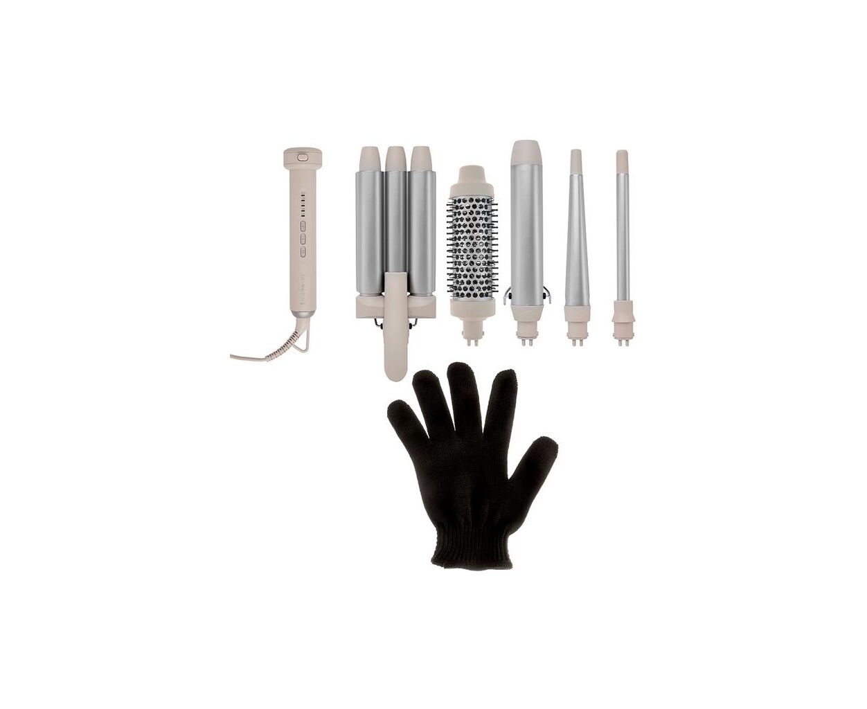 Trendology 5-in-1 Multi-Styler содержит пять сменных насадок для создания разнообразных причесок от пружинных локонов до объемных волн. Керамическое покрытие с турмалином уменьшает статическое электричество, обеспечивая гладкость волос. Нагрев завершается за 40 секунд до 210 °C в пяти цифровых режимах с LED-дисплеем и функцией Auto Memory. Система фиксации держит насадки надежно, кнопка освобождения упрощает замену, шнур 180 см вращается.