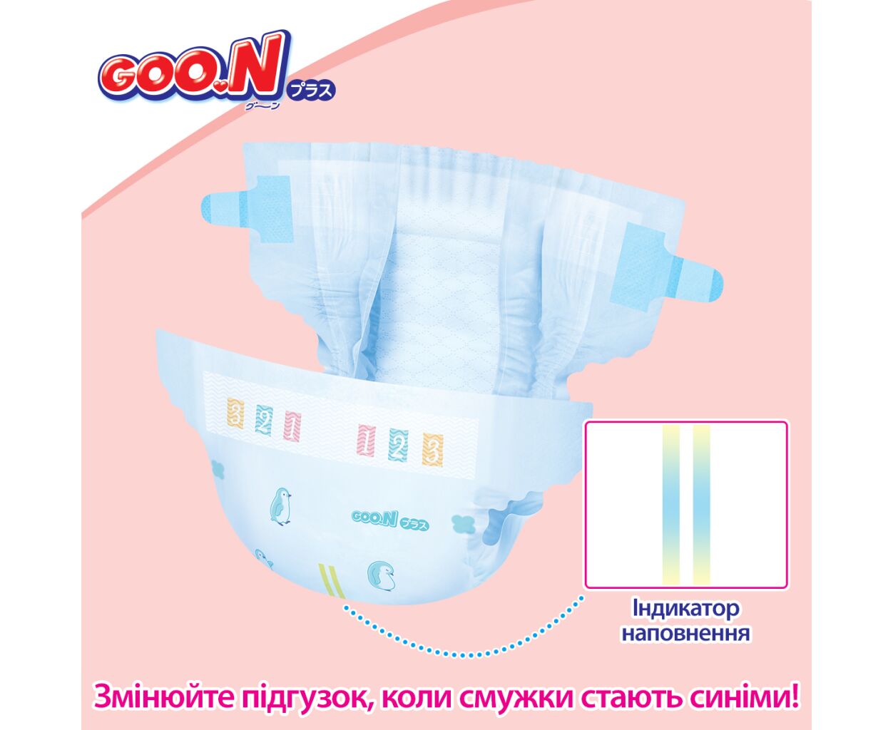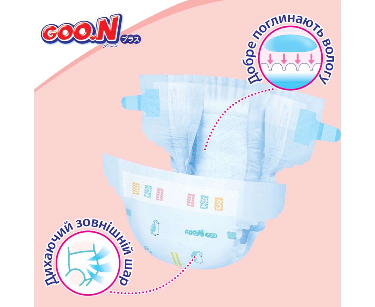 Описание Подгузники GOO.N Plus 4-8 кг Розмір S, на ліпучках 62 шт (21001496)