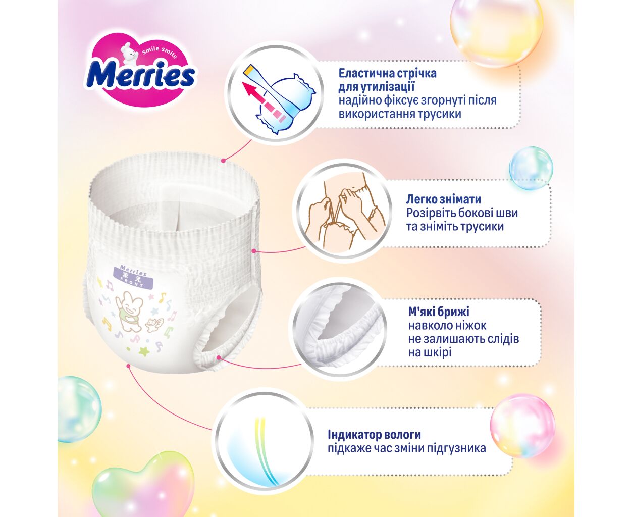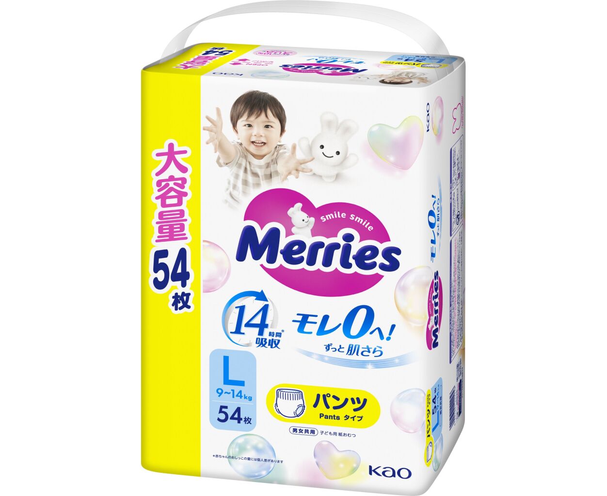 Описание Подгузники Merries Ultra Jumbo Розмір L (9-14 кг) 54 шт (4901301442956)