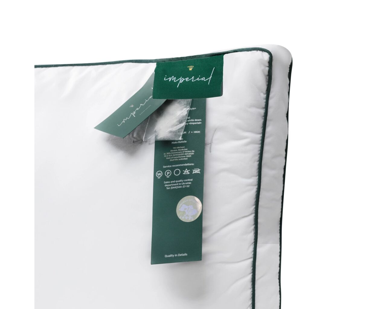 "Imperial" 100% пух - высококачественный отборный белый пух, который отвечает мировым стандартам качества. Показатели по мягкости и упругости пуха контролируются лабораторно и гарантировано находятся в пределах норм, сопоставимых с наполнителем, который используют европейские производители для производства своих пуховых изделий.