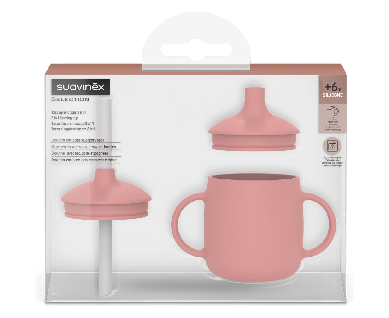 Поильник-непроливайка Suavinex Colour Essence силіконова 3 в 1 (з носиком та трубочкою), 270 мл, +6 м, рожева (402900)