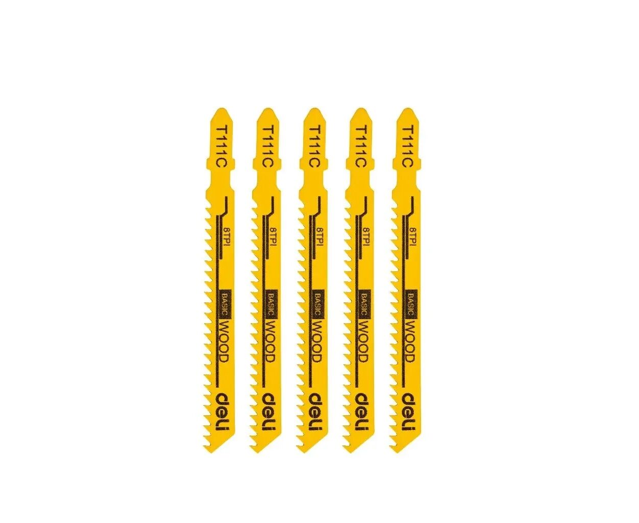 Описание Полотно Deli для лобзика, по дереву 74 мм 8 TPI (EDH-QJT008-E1)