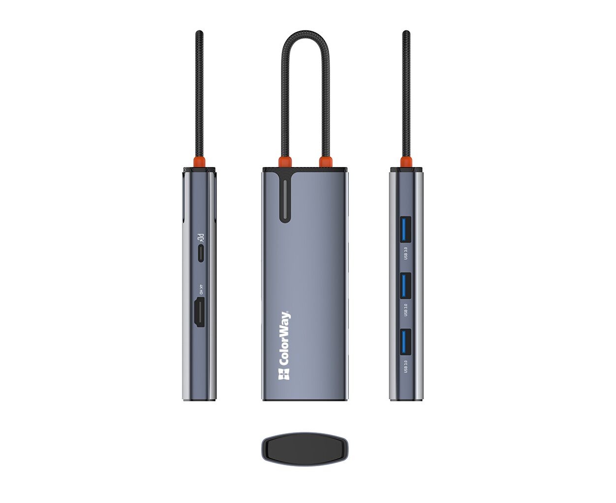 Описание Порт-репликатор ColorWay Docking Station USB-C 5-в-1 Type C PD 100W/USB3.0х3/HDMI 4К (CW-HUB01)